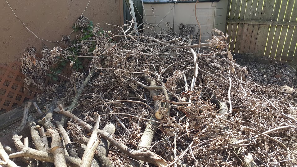 These limbs I’m leaving until I get a chance to cut them into smaller pieces with the chainsaw.
