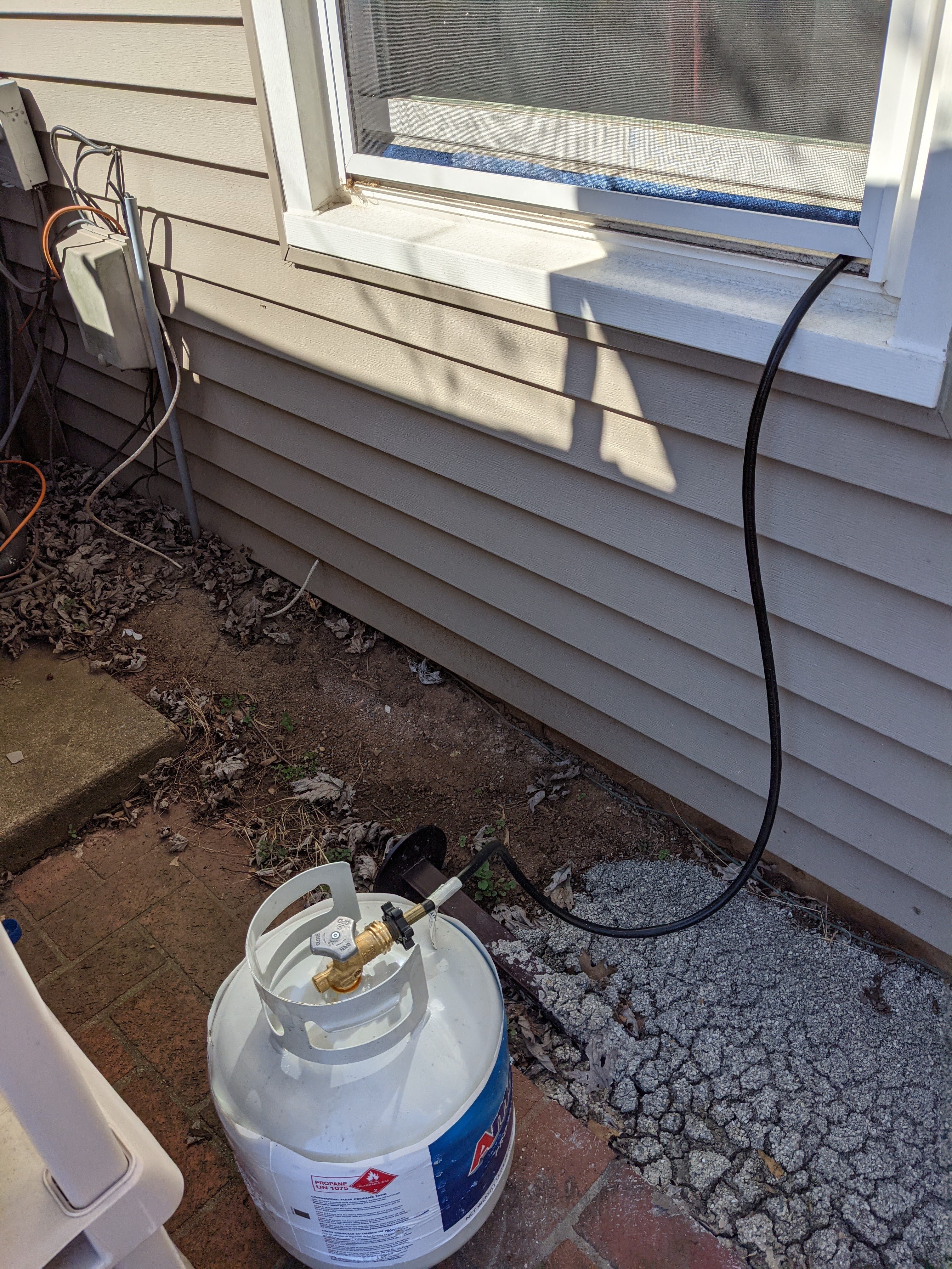 I just hooked up another bottle of propane for extra heat. I have one more bottle left and am hoping that I won’t have to re-order until next winter. Who knows with the way the weather is lately. Ha, I’m waiting on it to just warm up enough on a weekend were I can wash my car.