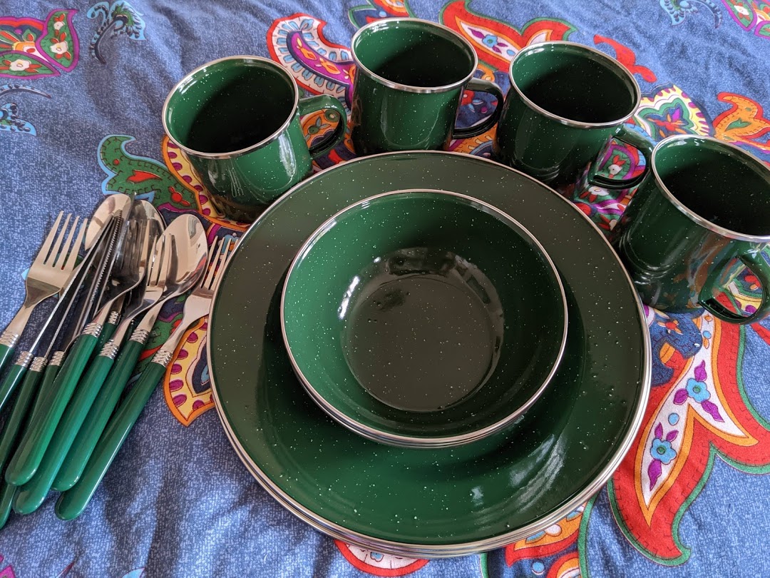 My 24-piece enamel tableware set came in. It is very light weight and perfect for the van. I haven’t decided how I’m going to cook in the van yet, propane or induction top. It will have to wait until I get a handle on how much electricity I will have available. I’m thinking the solar setup will run me about 15,000 bucks. The batteries alone will be close to a thousand a piece. I will need AC for sure as long as I am in Virginia or the East Coast and that takes lots of juice to run.