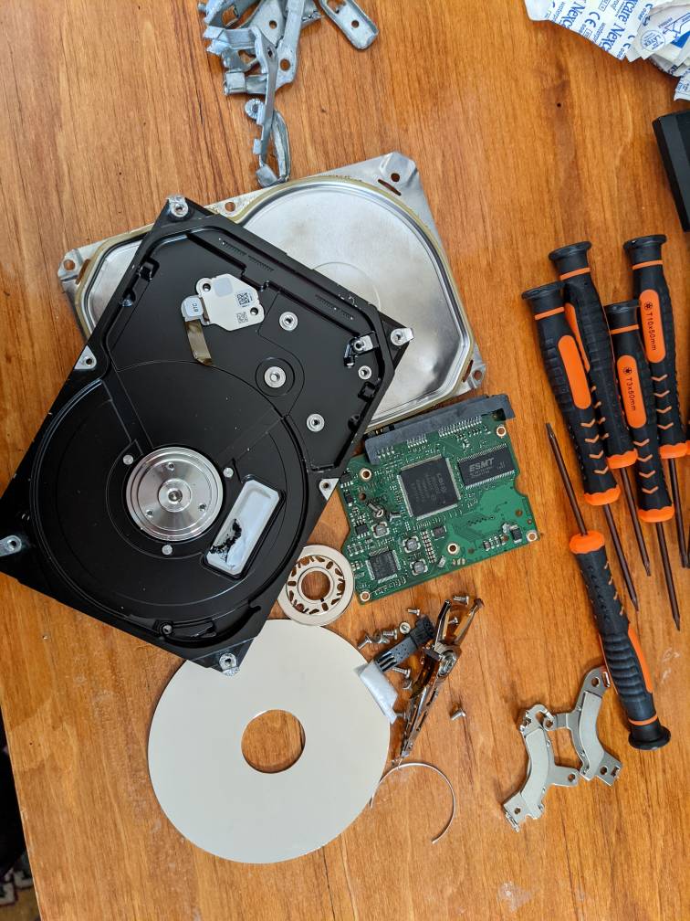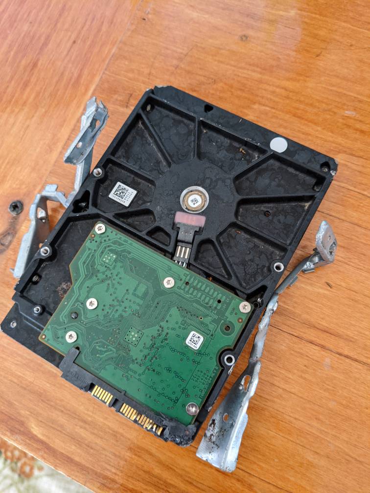 This is the hard drive out of my old computer. It’s been sitting in my back yard for months. I had been trying to figure out how to destroy it so that I could get rid of it. I don’t know why I never thought about google to find out how.