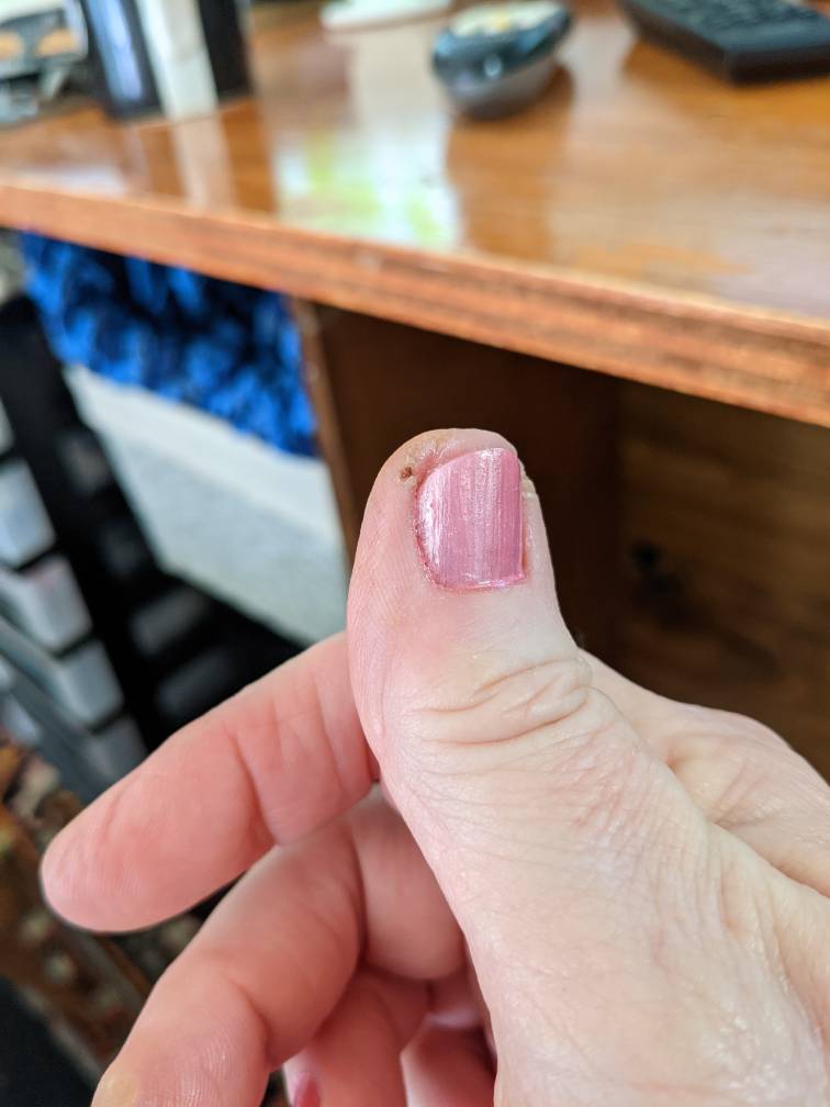 No 5 Minute Glam Nails this week. I cut my nails real short. My poor hands are so dry from the constant washing and the use of disinfectant that they are cracking. Nevermind hang-nails, I have hang-hands. My hands get caught on clothing and towels. I’m gonna go and slather them with some lotion now. 🙂 Have a good week everyone and stay safe.