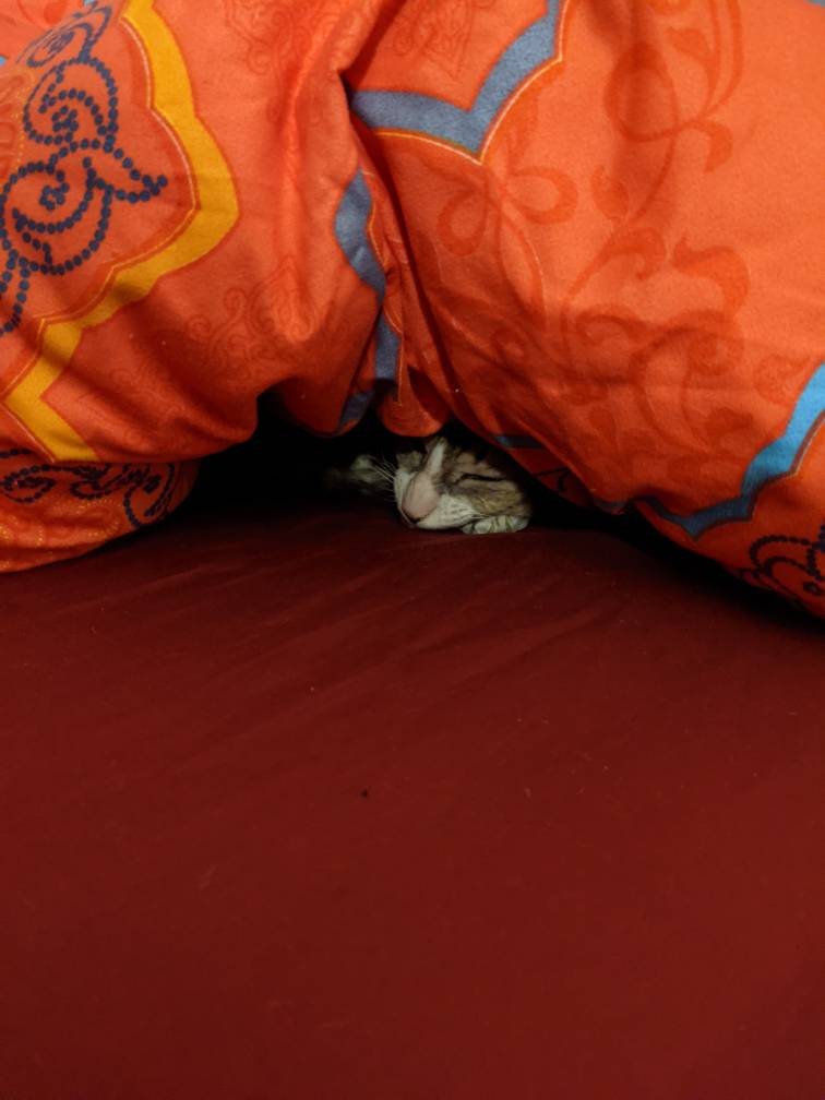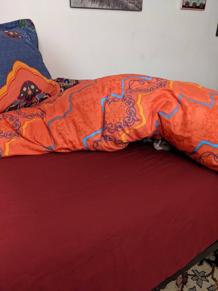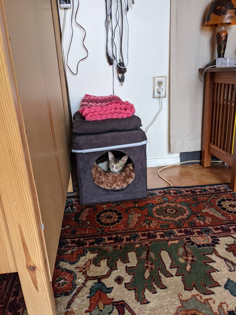 I’ve been wondering why Silly was messing up and hogging my bed for the last week. Everyday when I get home, my bed is in a mess and she’s in it. It’s weird because she does have a heating pad in her little home.
