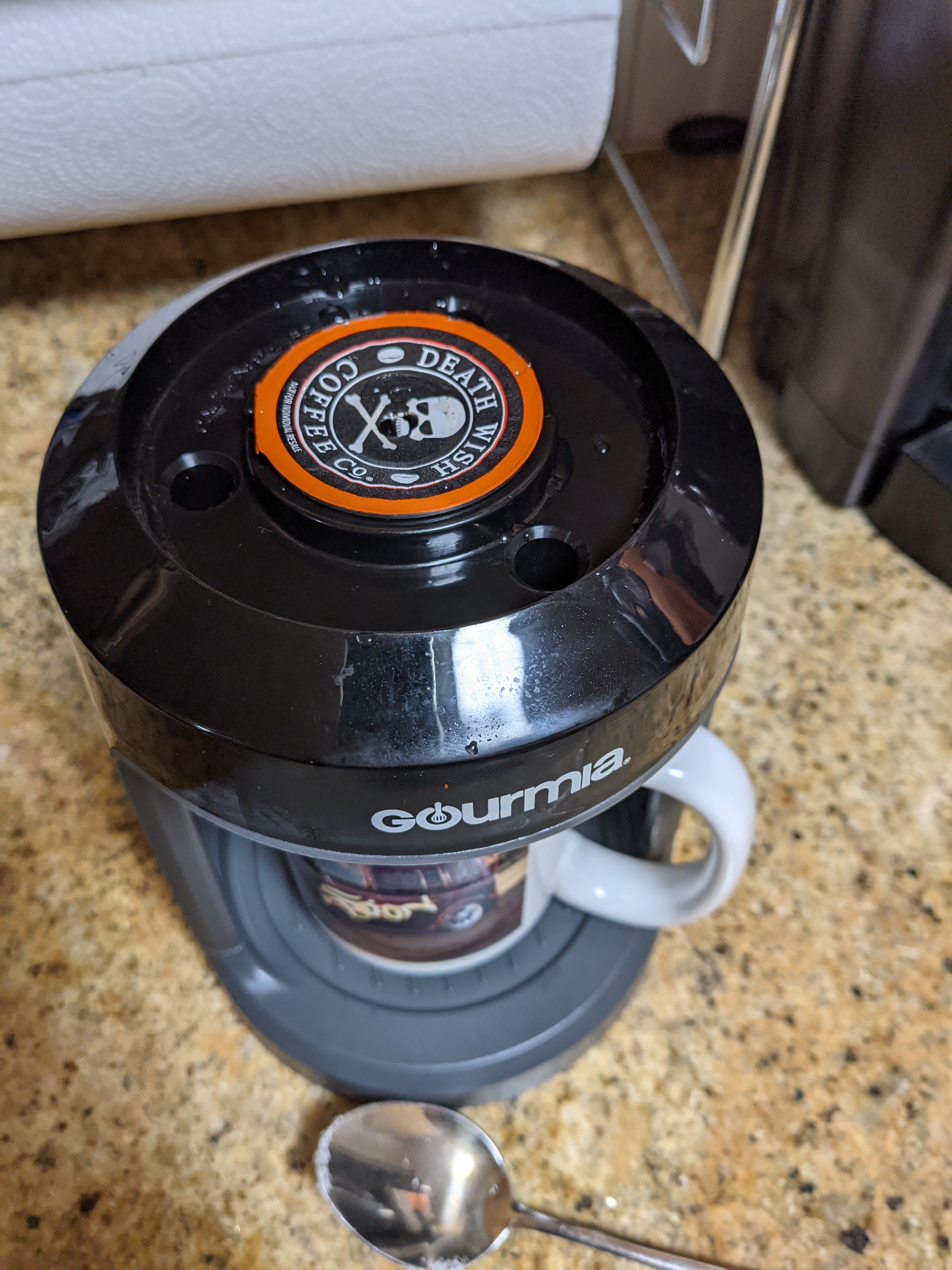 Good bye Keurig!! I know that van-life is still a ways away, but every once in a while I find something “Van Worthy”. I love my K-cup coffee. The Keurig takes quite a bit of electricity and I’ve been looking for a low wattage coffee maker to take into the van. I really don’t like the taste of the drip coffee makers and was trying to figure out a way to take my Keurig. Another thing that had me worried is the space that it would take up. Not to mention how hard it is to clean since you really can’t take it apart. Well, my worries are over. I found a way to make a descent size cup of coffee.