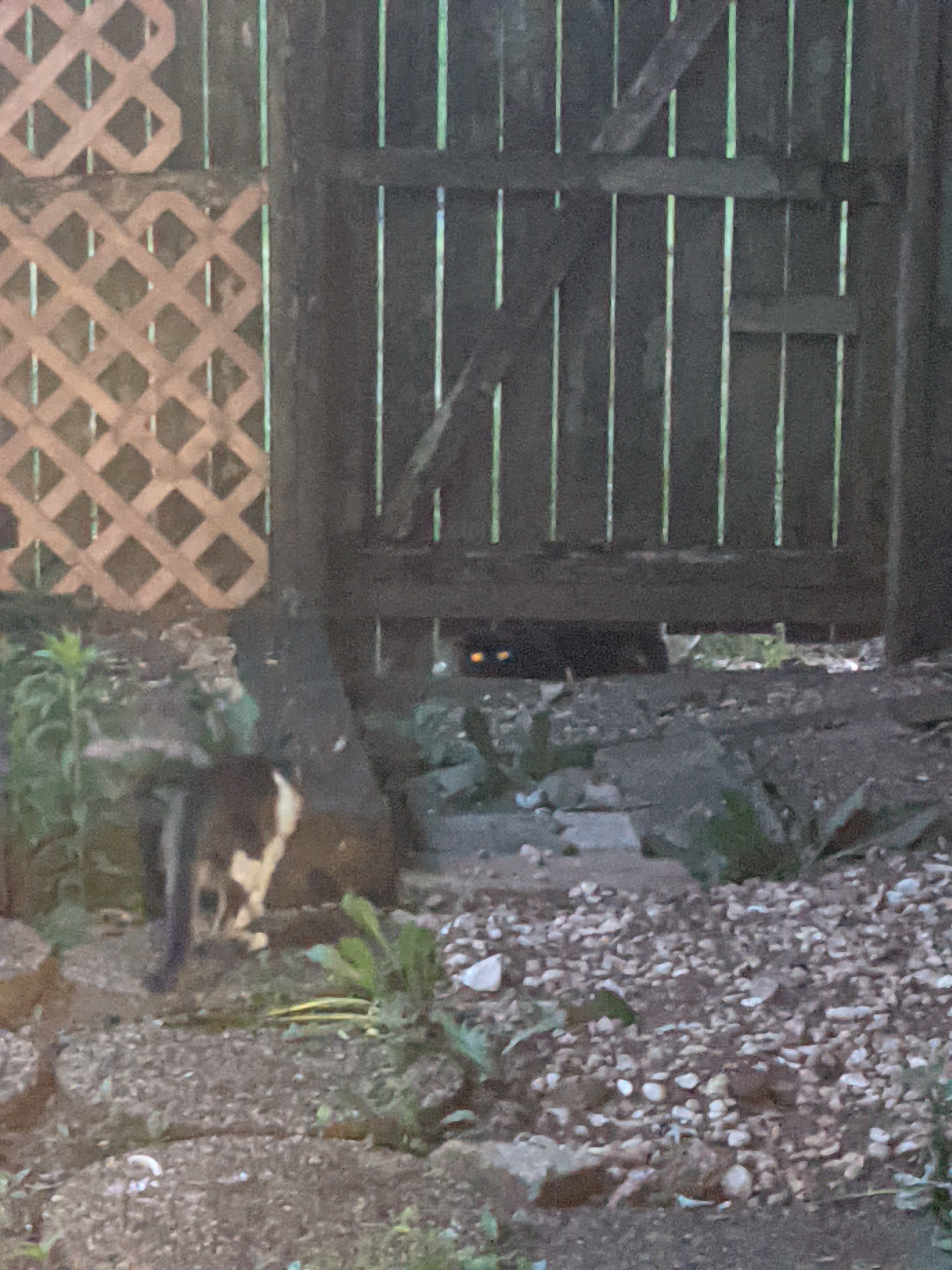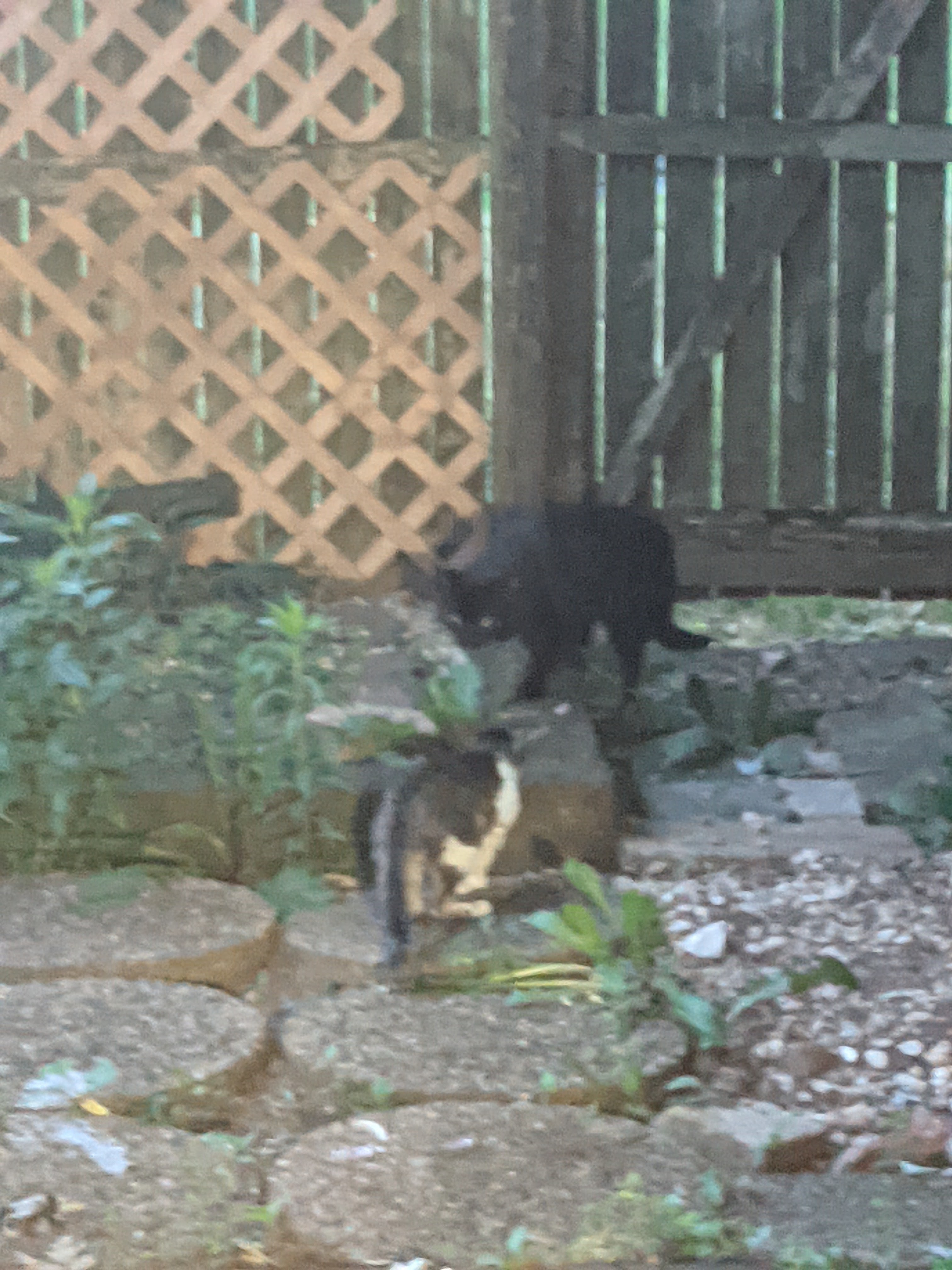 I went to the backyard and there she was chastising this huge black cat. She’s so funny. Nothing seems to bother her, not birds, squirrels, mice, rats, lizards, but let there be a cat on “HER” property. All bets are off and she goes into “I have to defend my territory” mode.