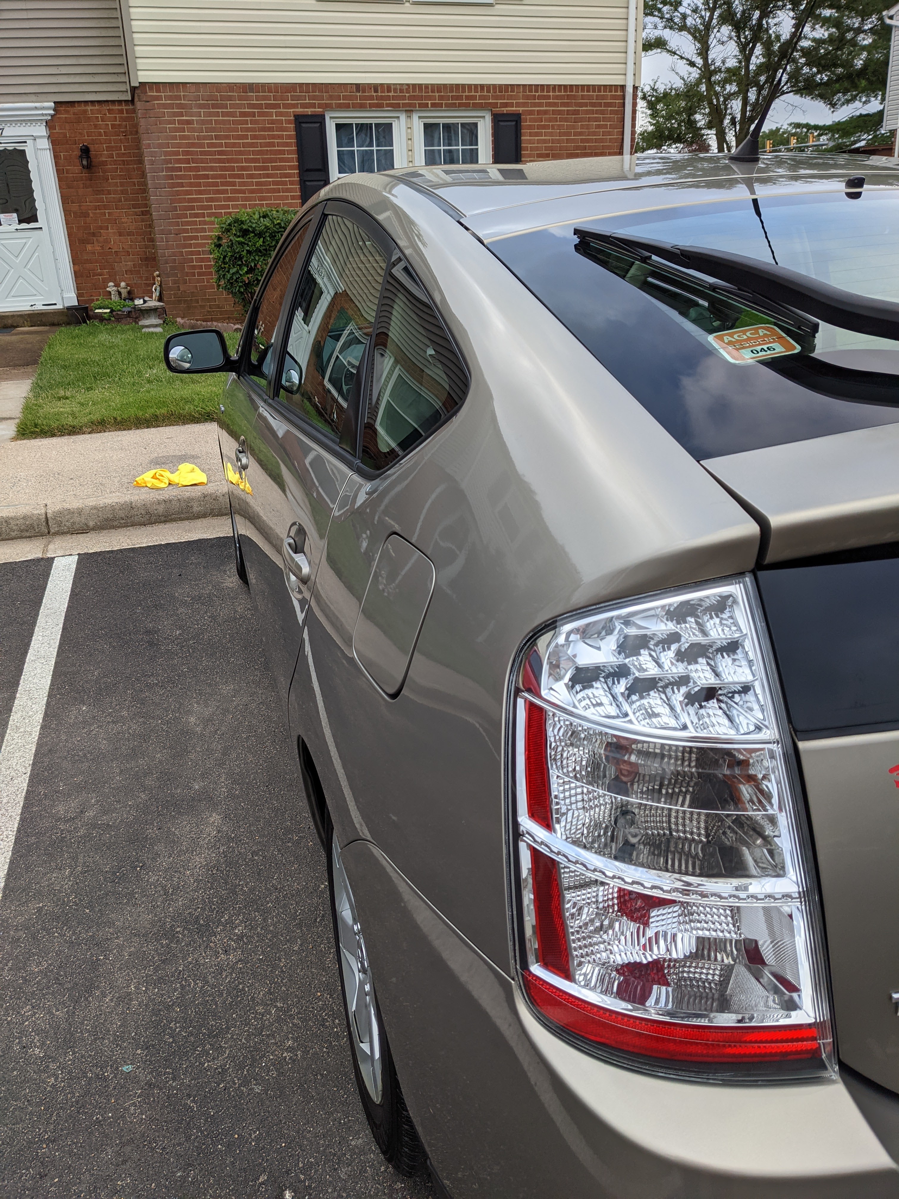 Yesterday I spent six hours detailing that Prius and clearing it’s headlights. I started with the headlights. Then I claybar’d it, put on a coating of Northern Light liquid wax and buffed that out. Then I used Back to Black on all the ashy looking plastic parts. This morning I wiped her down. Added more Back to Black and hand waxed it with XXX paste wax. I think this is as good as I can get her.