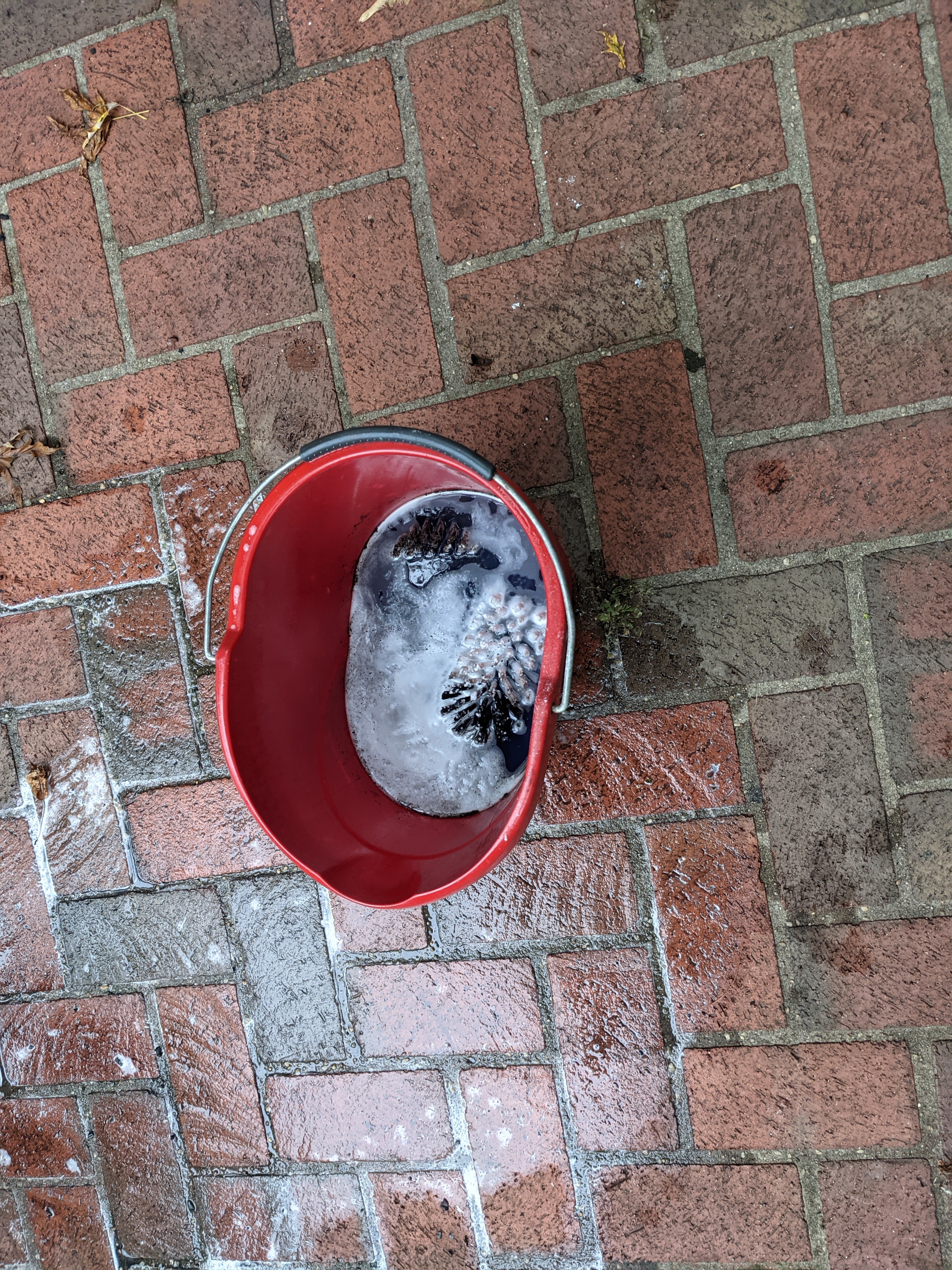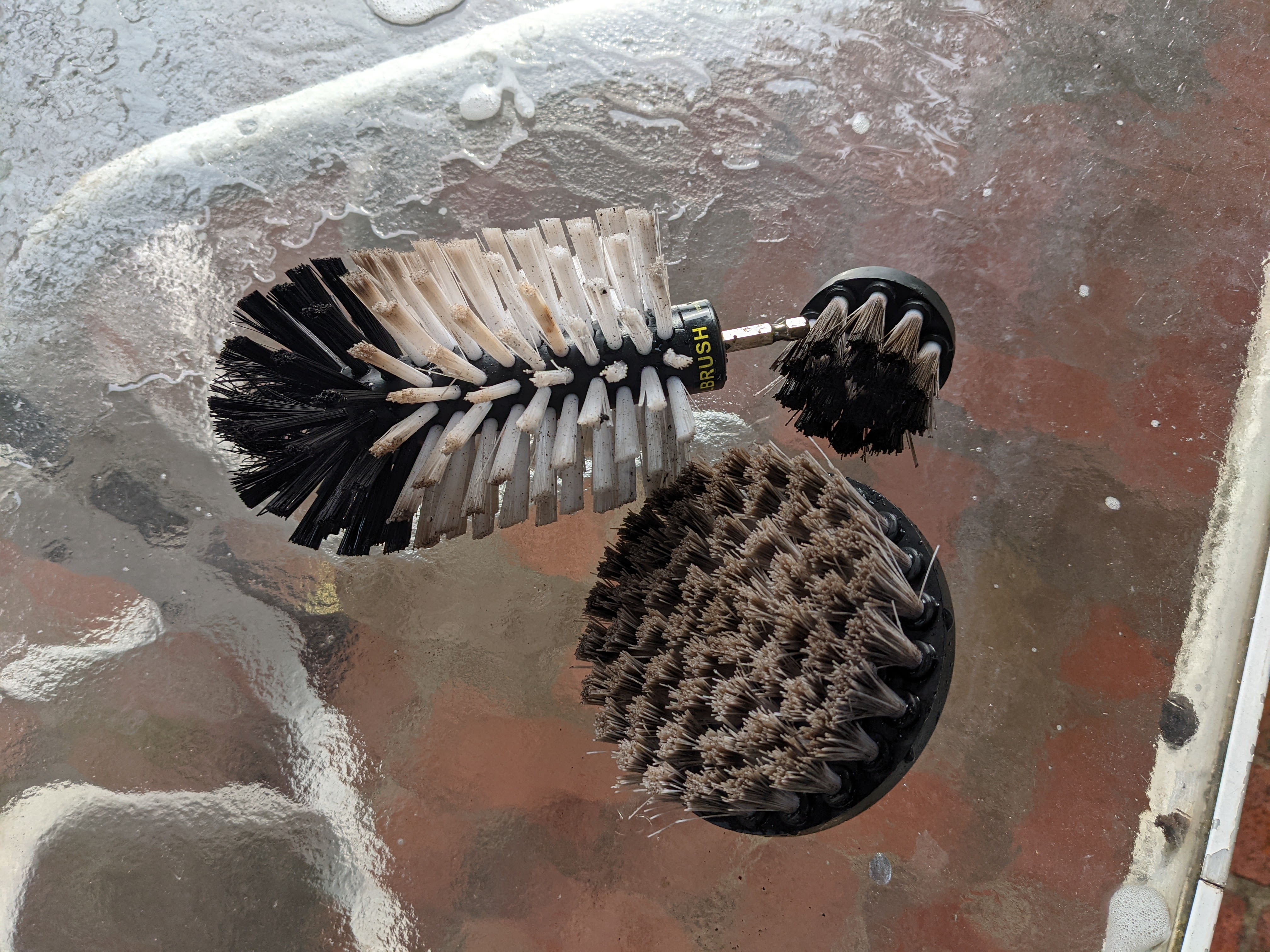 The brushes were totally black by the time I finished and I had to soak them in a bucket. First with SuperClean, then with Tide with Bleach in boiling water. They never did get clean. I should have used them on my carpet first. Oh well, I guess I’ll use these outside.