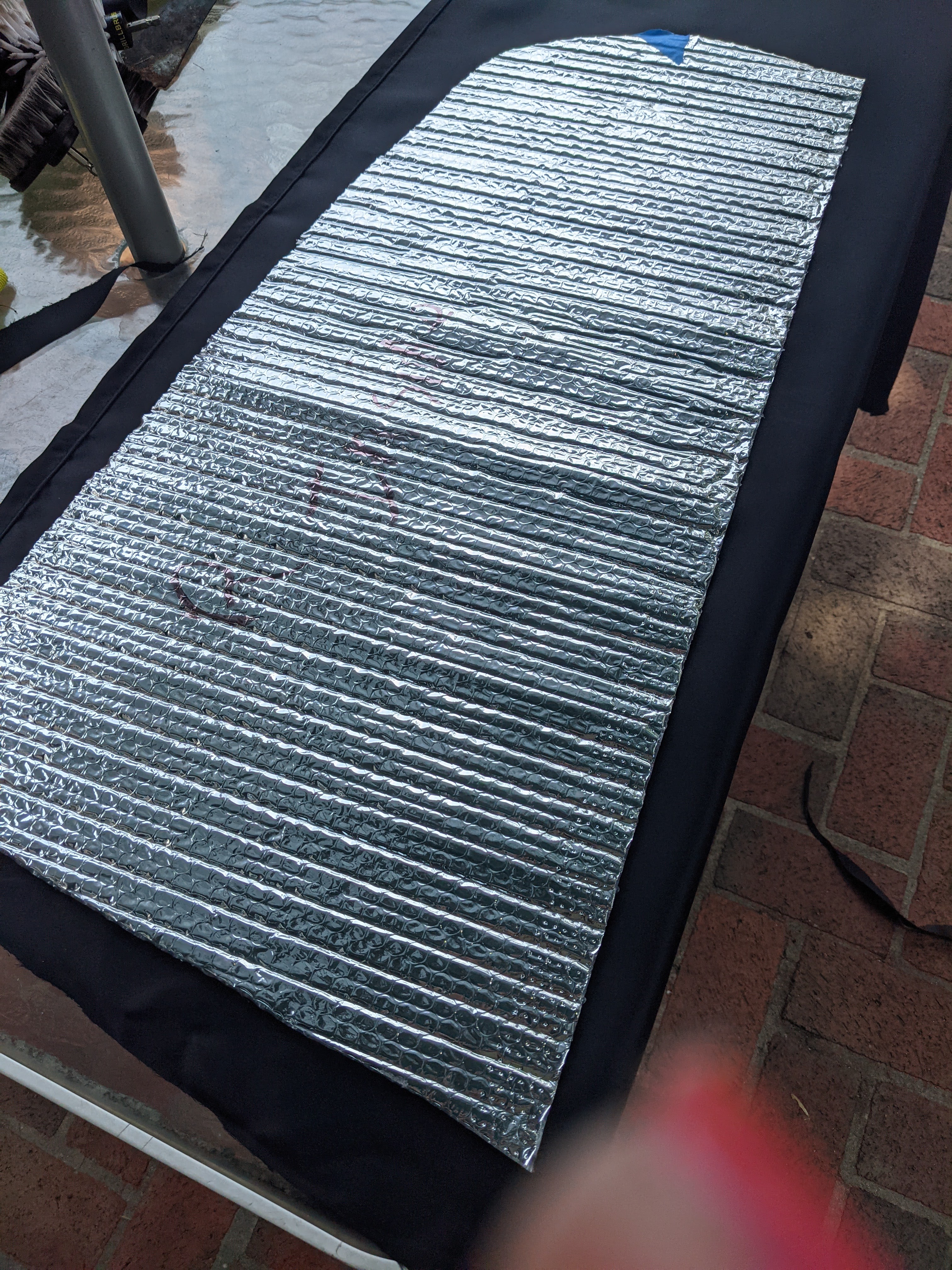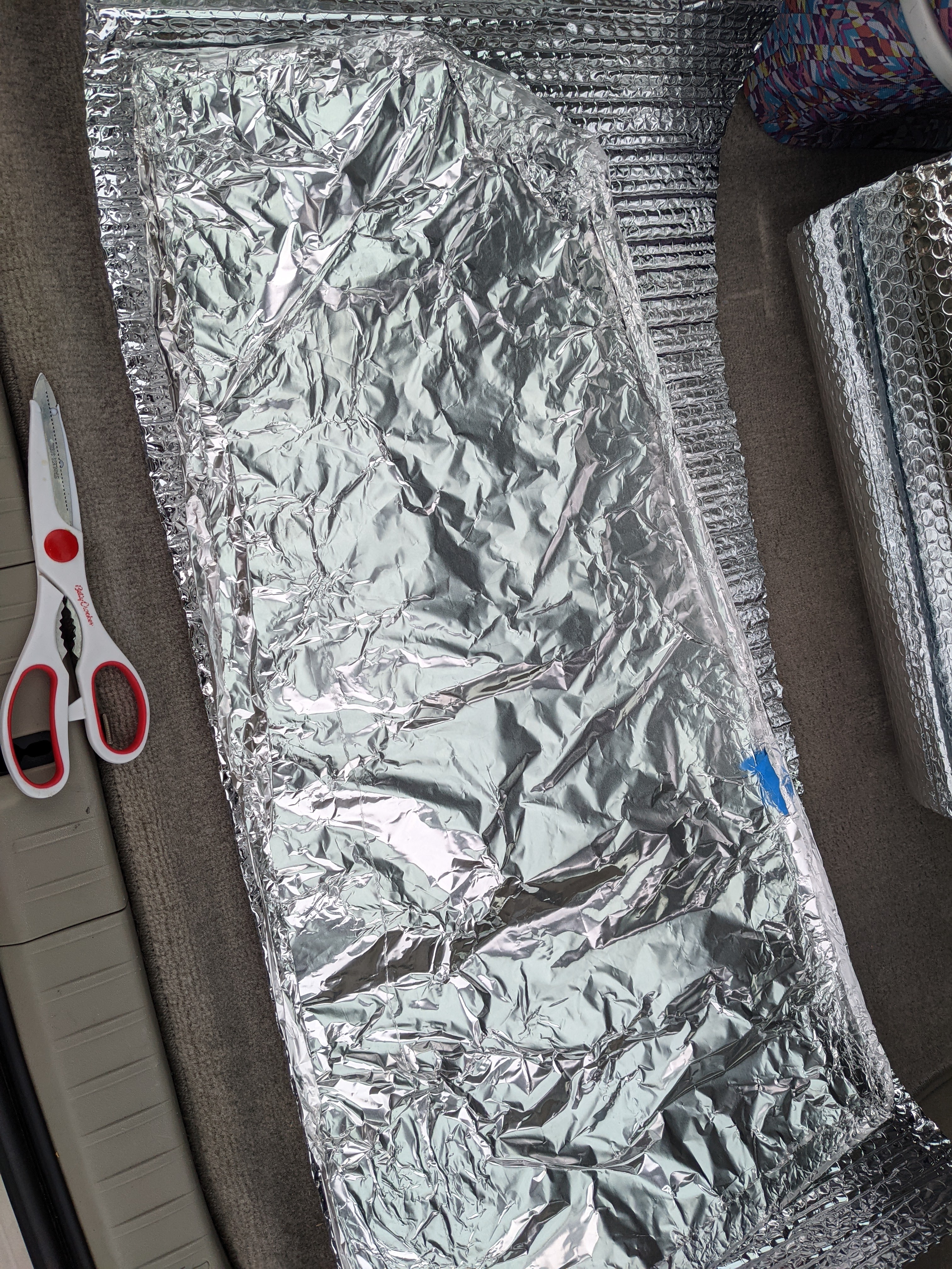 Then I laid it on top of the the Reflectix that I bought a couple of weeks ago to cut the pattern.