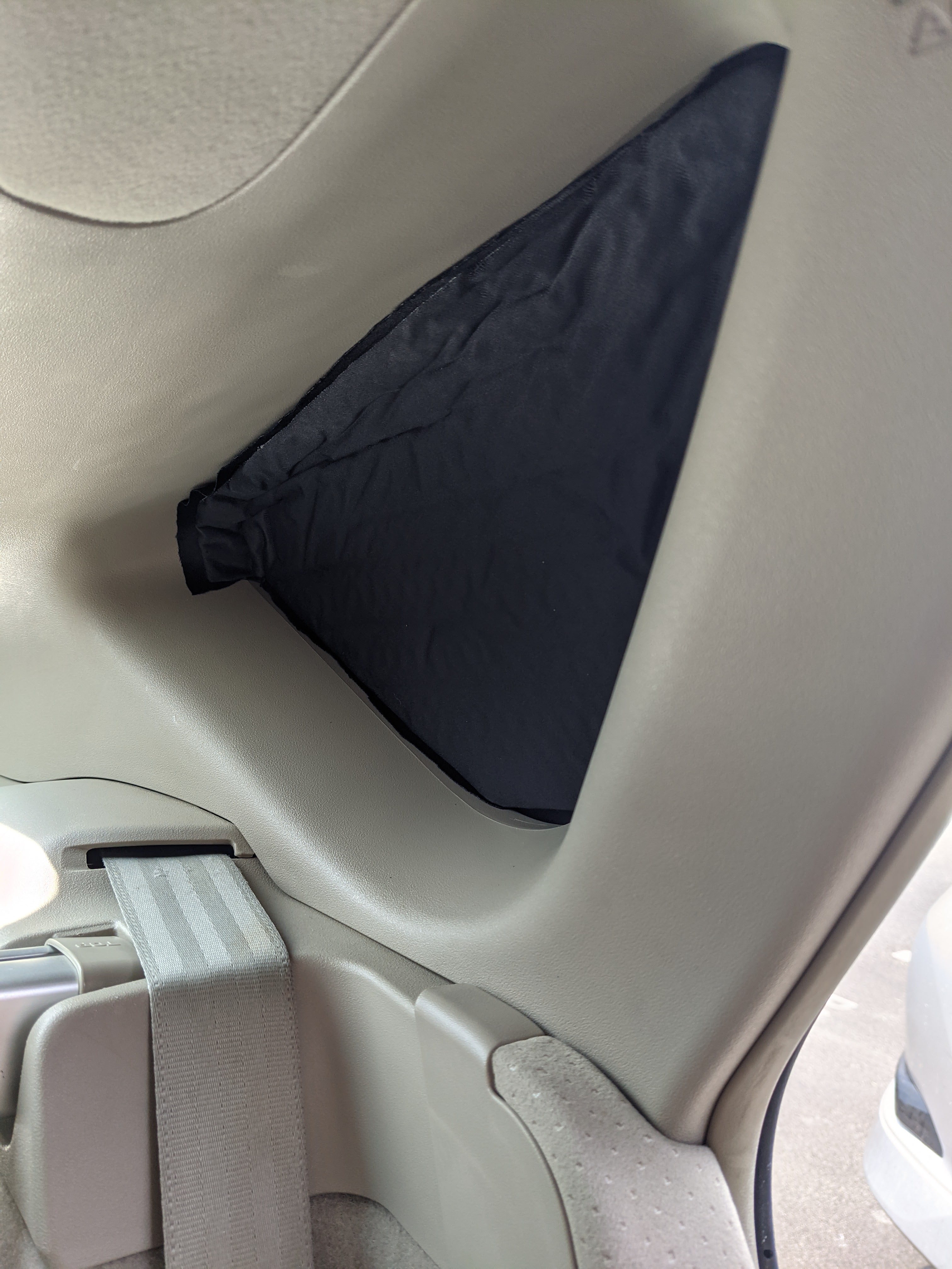 Rear side window. The extra fabric on the top makes it easy to remove. It’s absolutely “light” tight.