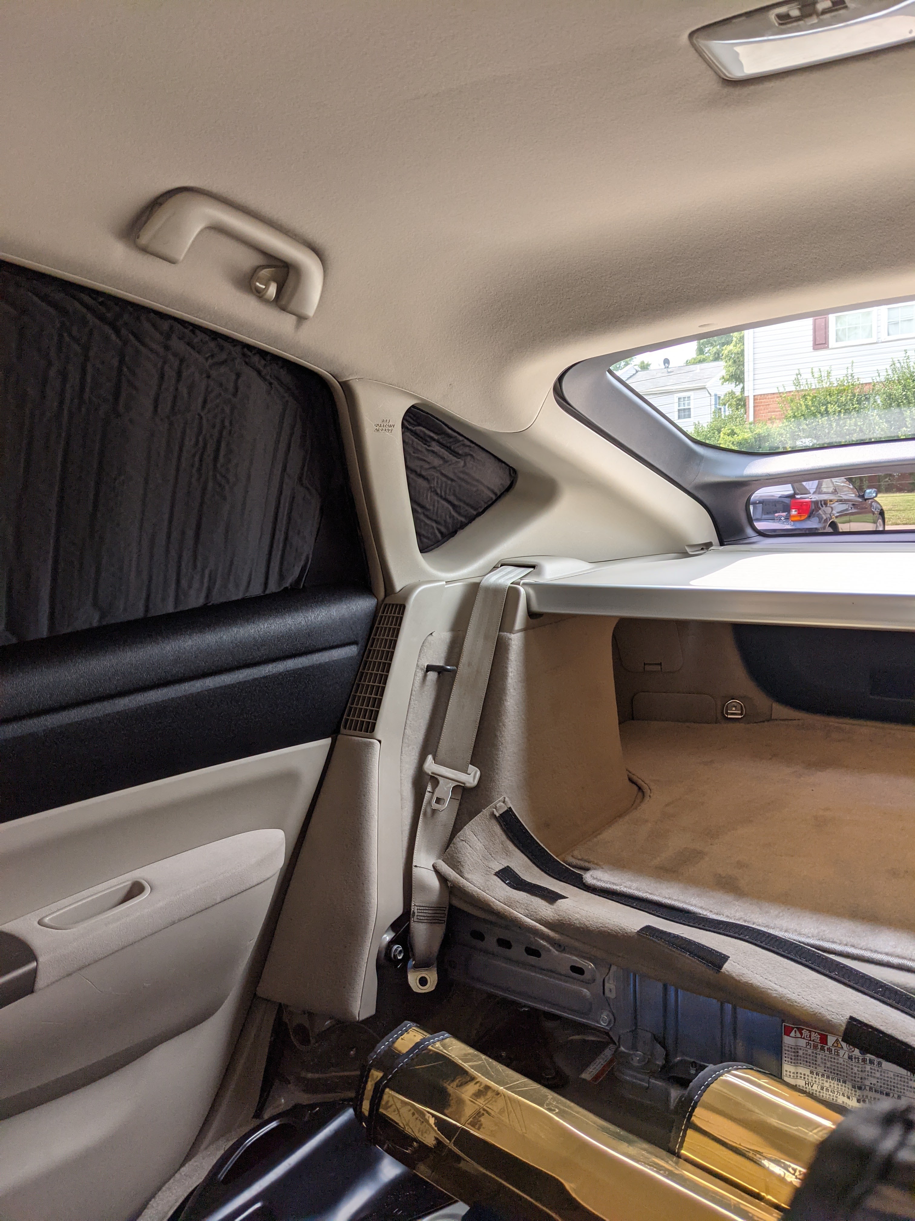 View from the front seat. For the rear and front windows I ordered the gold colored window covers. I haven’t tried them out yet. Hopefully they are “light” tight too, if not, I’ll just have to modify them.