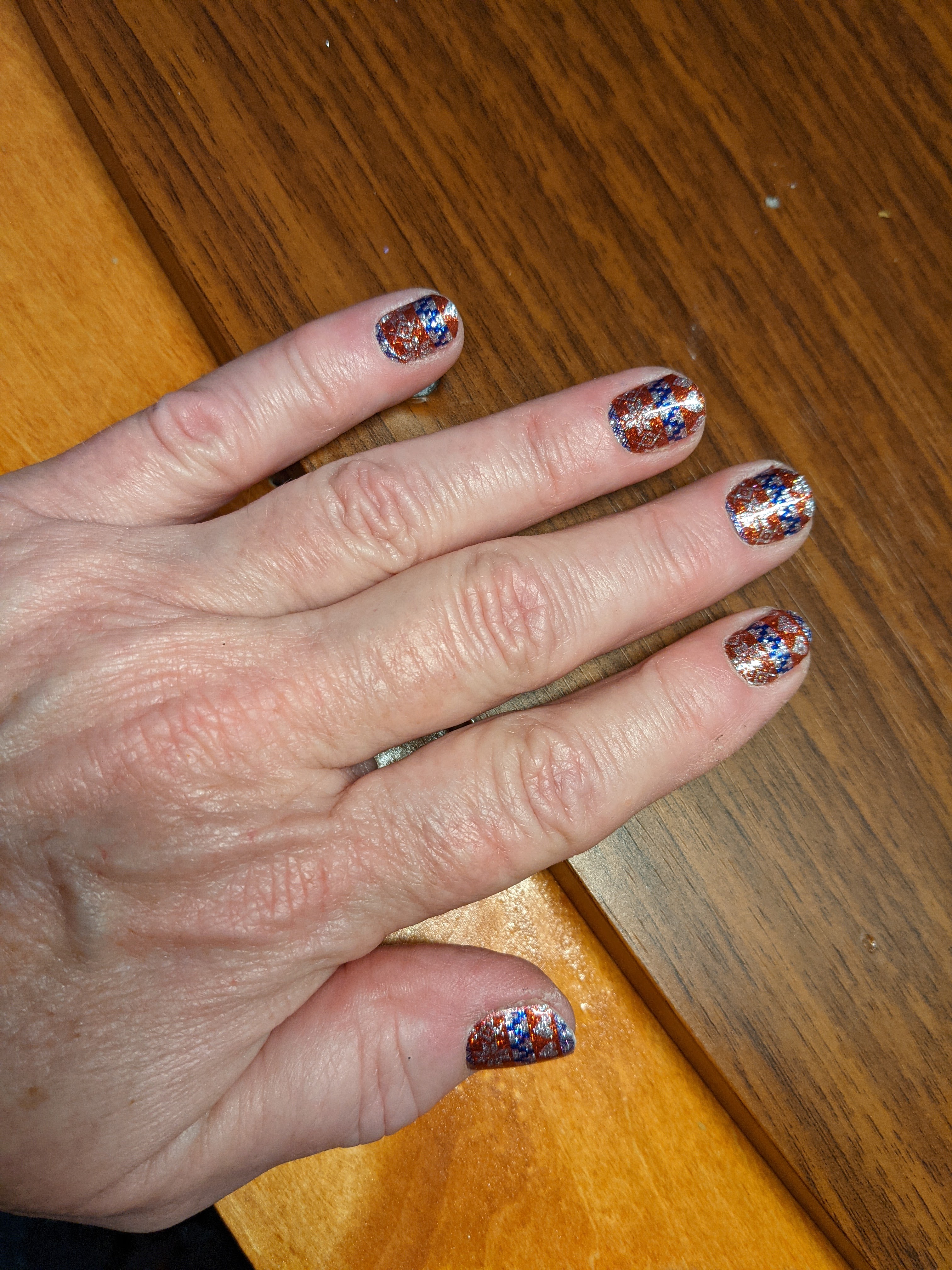 I hope everyone has a great 4th. I put these 5Minute Glam Nails on top of the ones I already had on Thursday. I didn’t have time to remove the old ones. I was kind of worried about not being able to get them off. It looks like I worried for nothing because they came right off under some very warm water.