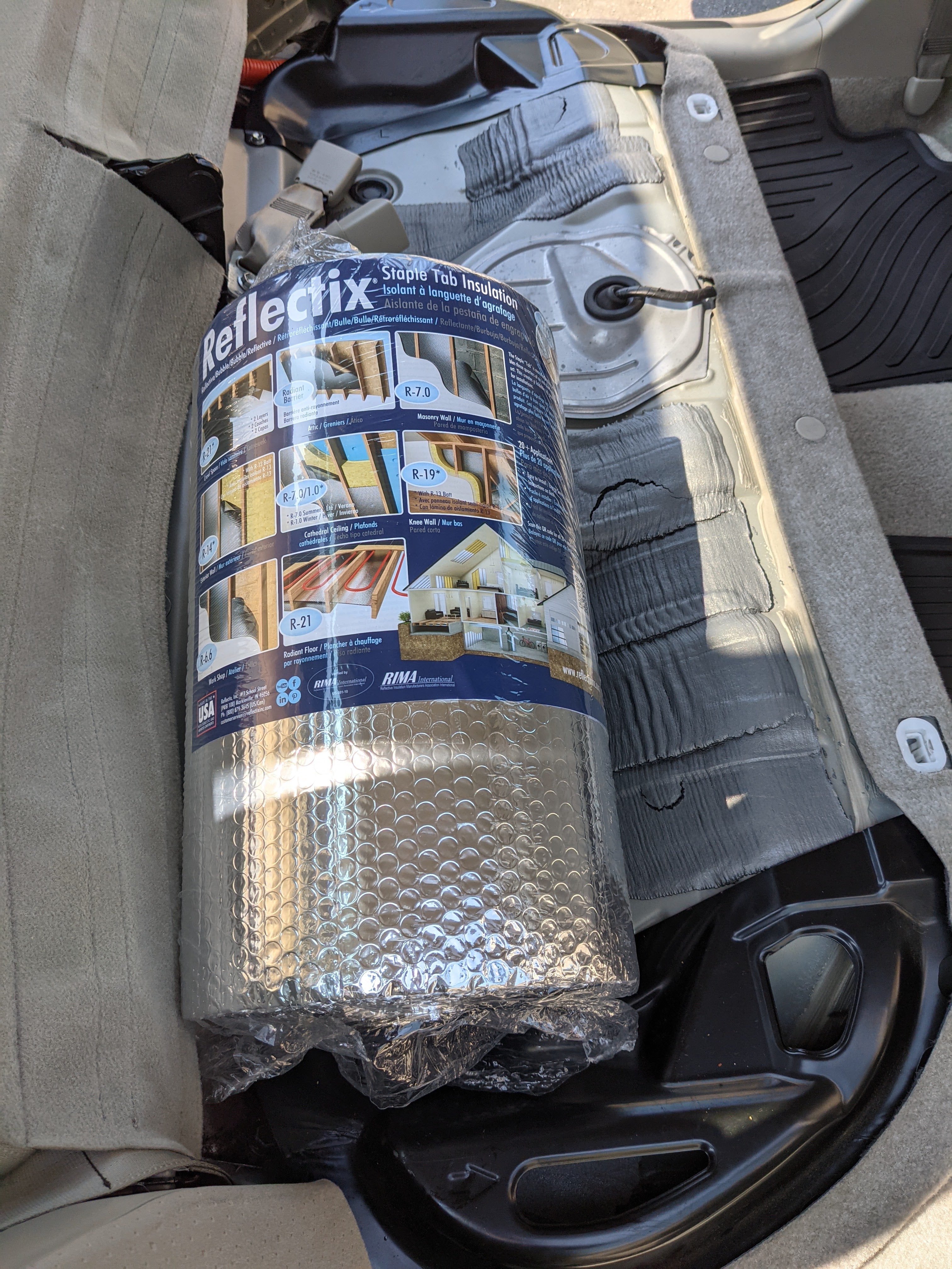 ^^This is a roll of Reflectix for next weekend’s project. I’ll be making window coverings for all the back glass so that no one can see inside.