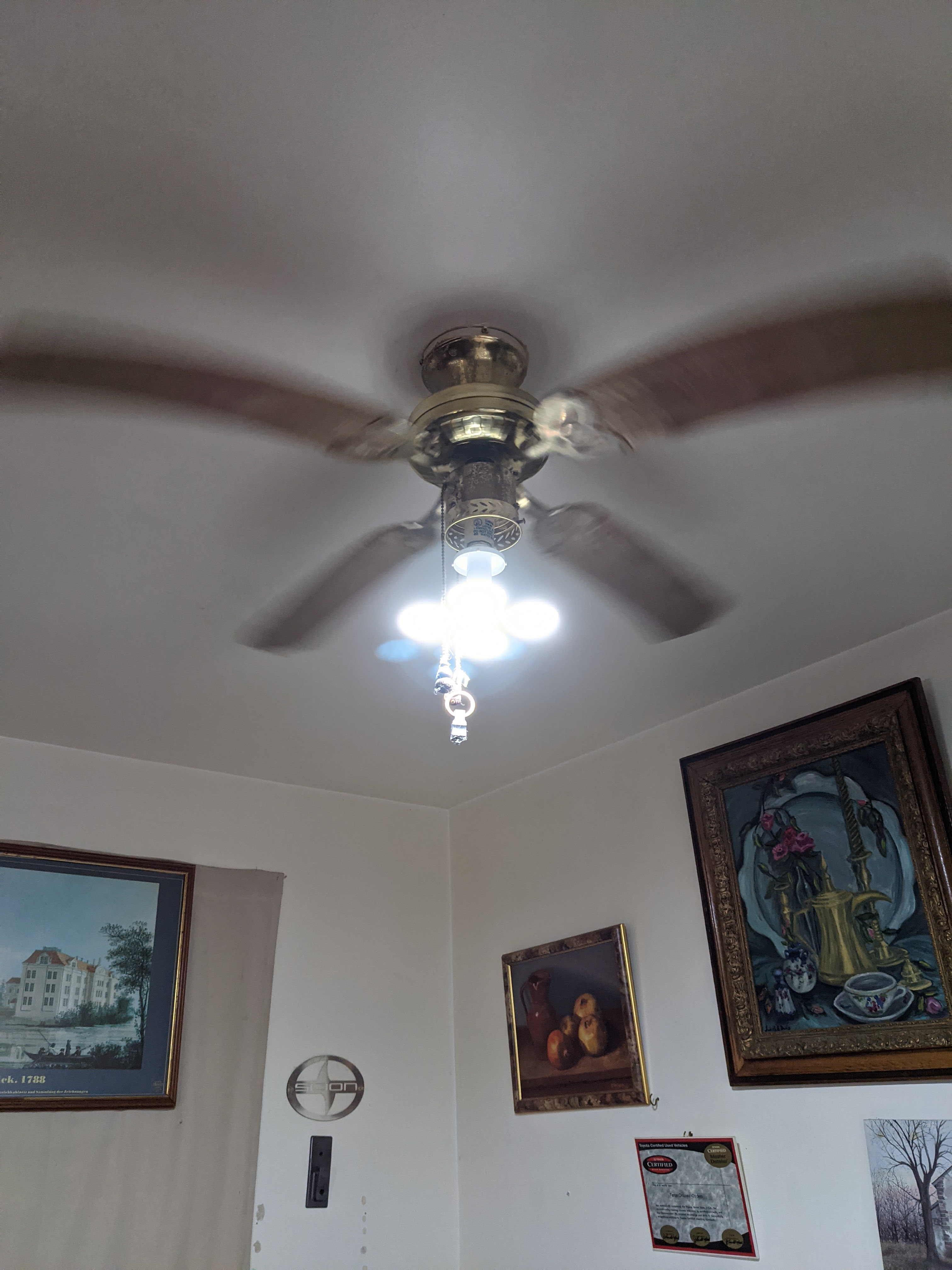 I bought this LED light a couple of months ago. It sure looked a lot bigger in the photos. I really didn’t think it was going to be of use to me, but then I put it in the ceiling fan this morning.