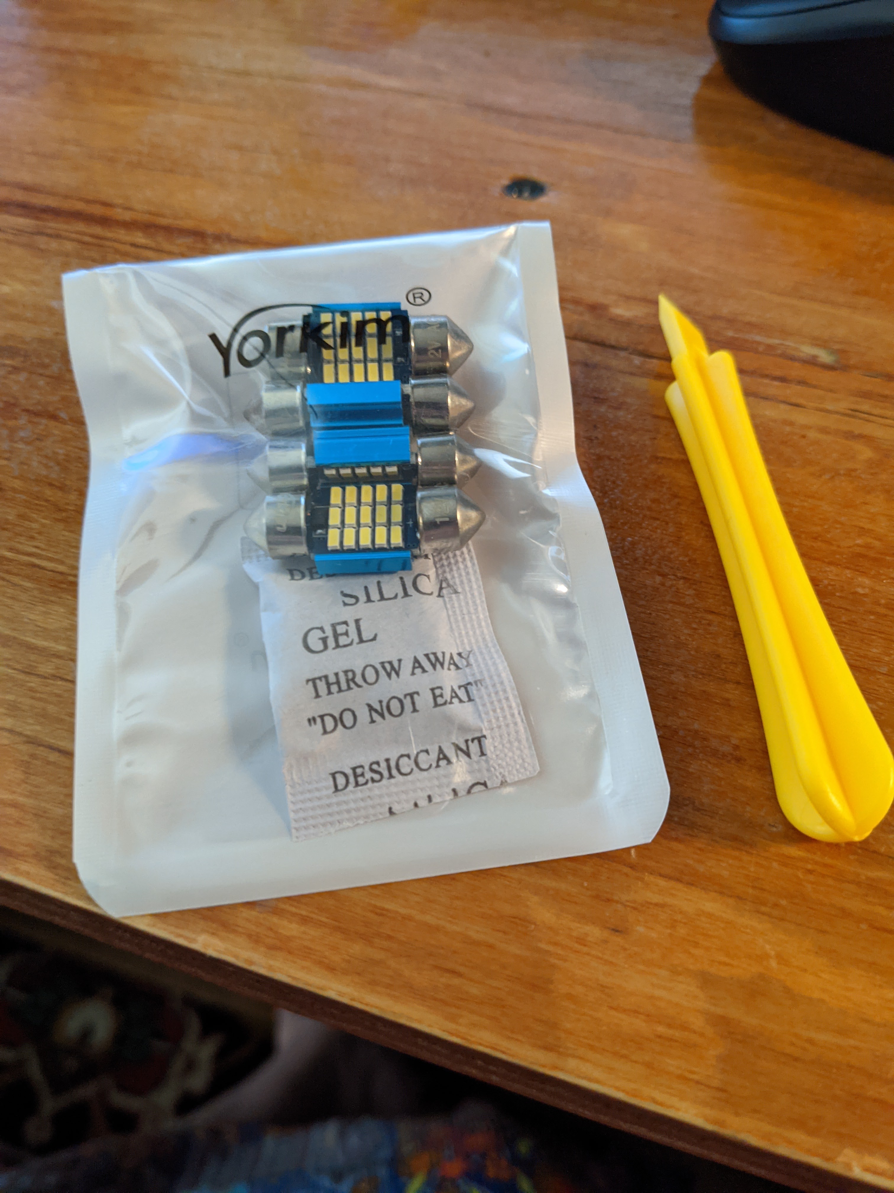 The LEDs I ordered for the inside of my car came in. They are supposed to fit, according to Amazon, but are too large. Now my dome light that turns on when I open the car door is out and so is the radio. I think I blew a fuse.