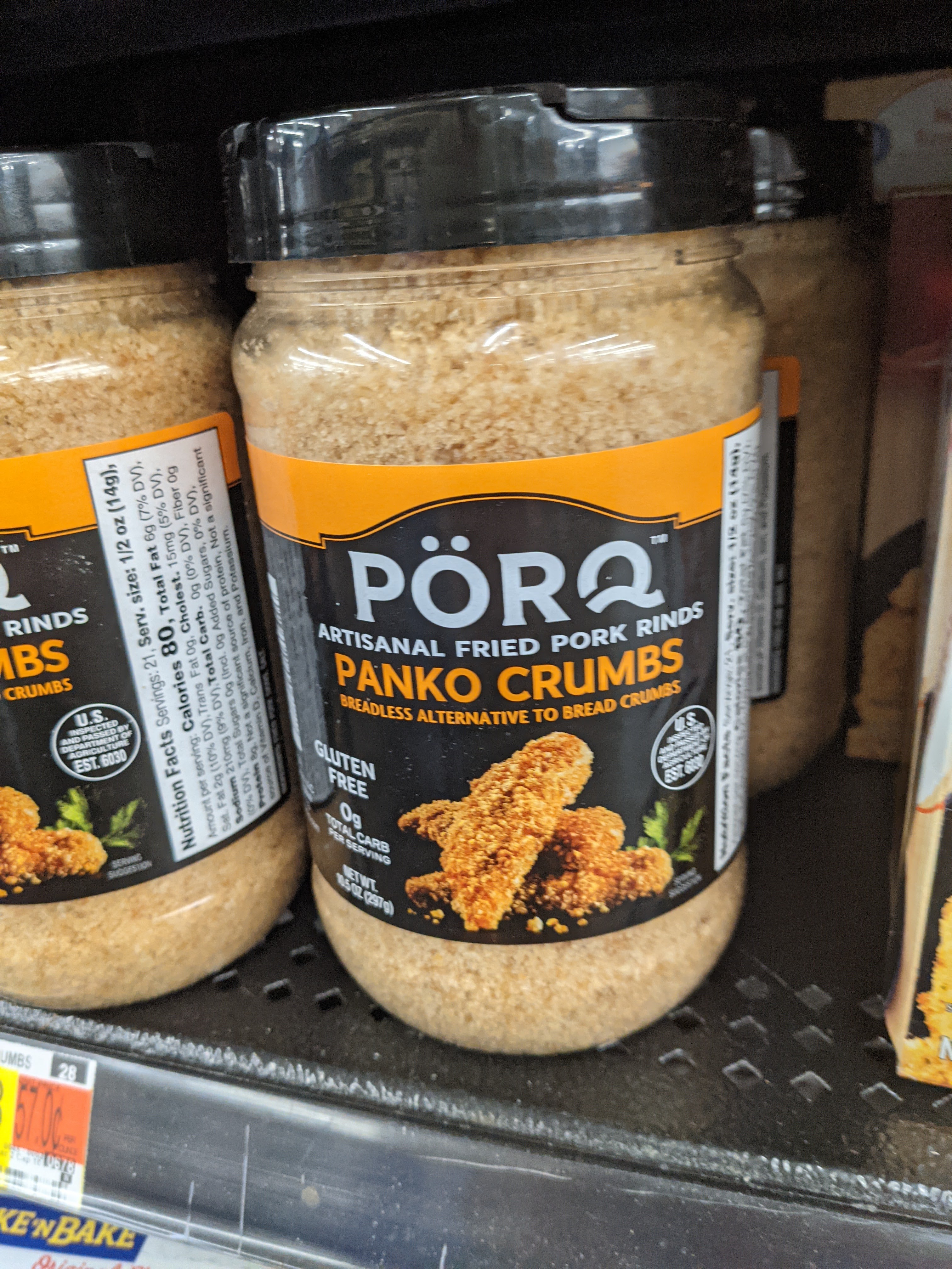 I usually get the crushed pork rinds from Amazon, but they run like $16 a pound. I’m glad I can just buy it off the shelf if I get the urge to bake this bread.