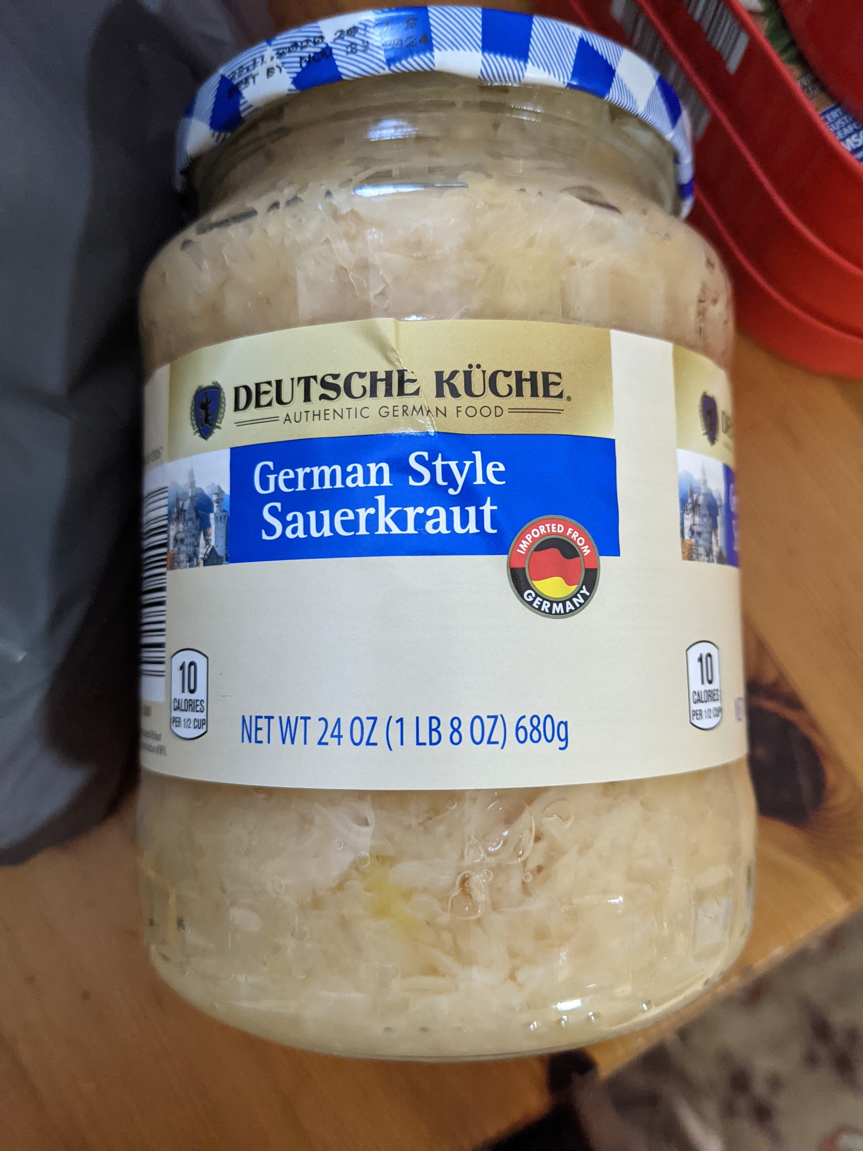 I went to the store at 6 AM yesterday to get groceries. I wanted some more sauerkraut and since Aldi doesn’t open up until 8 AM I figured I’d buy some at Walmart since I was already there.