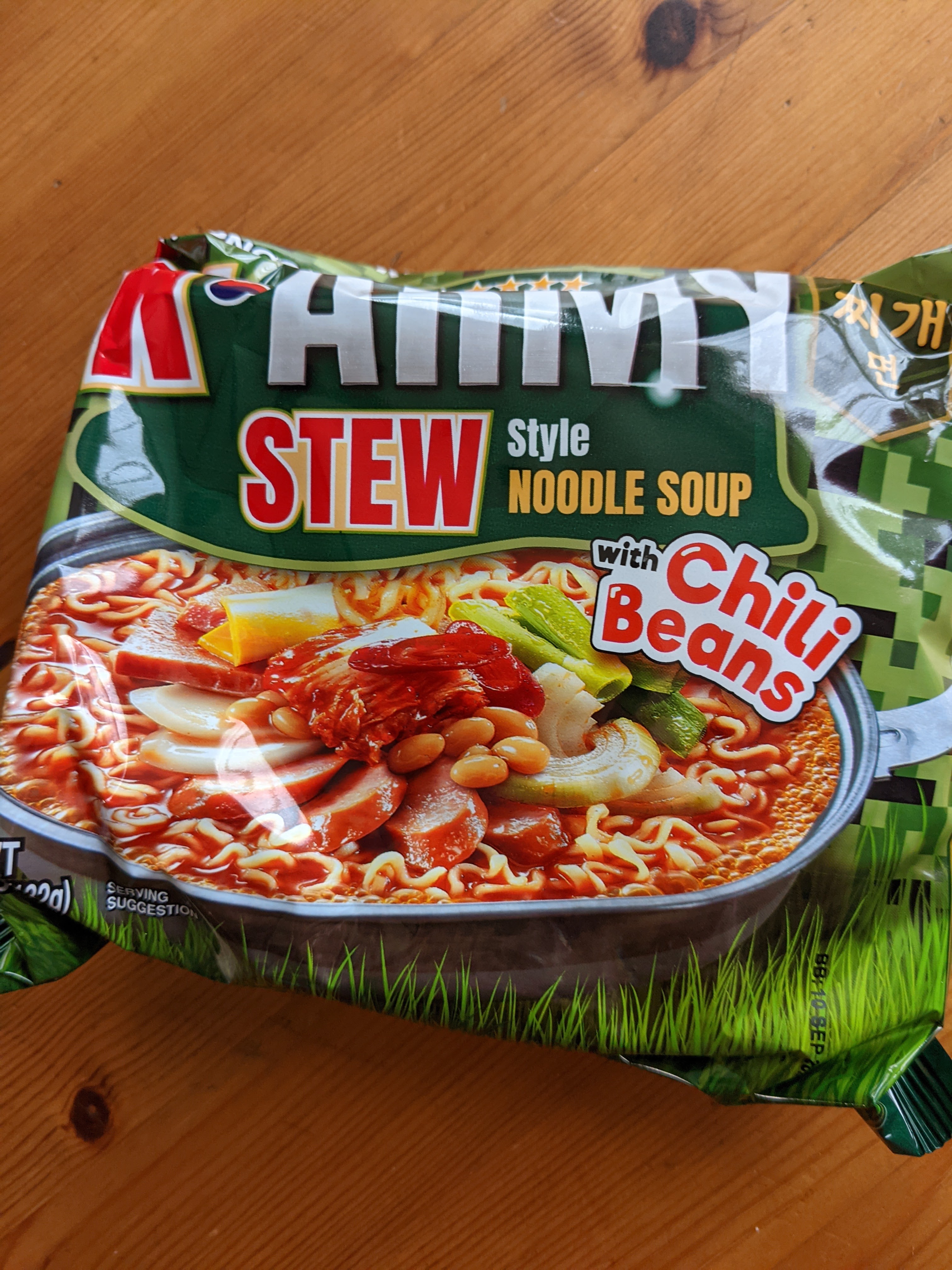 I had this craving for ramen noodles and bought a couple of packages of Stew with Chili and Beans. Of course I had to doctor it up a bit.