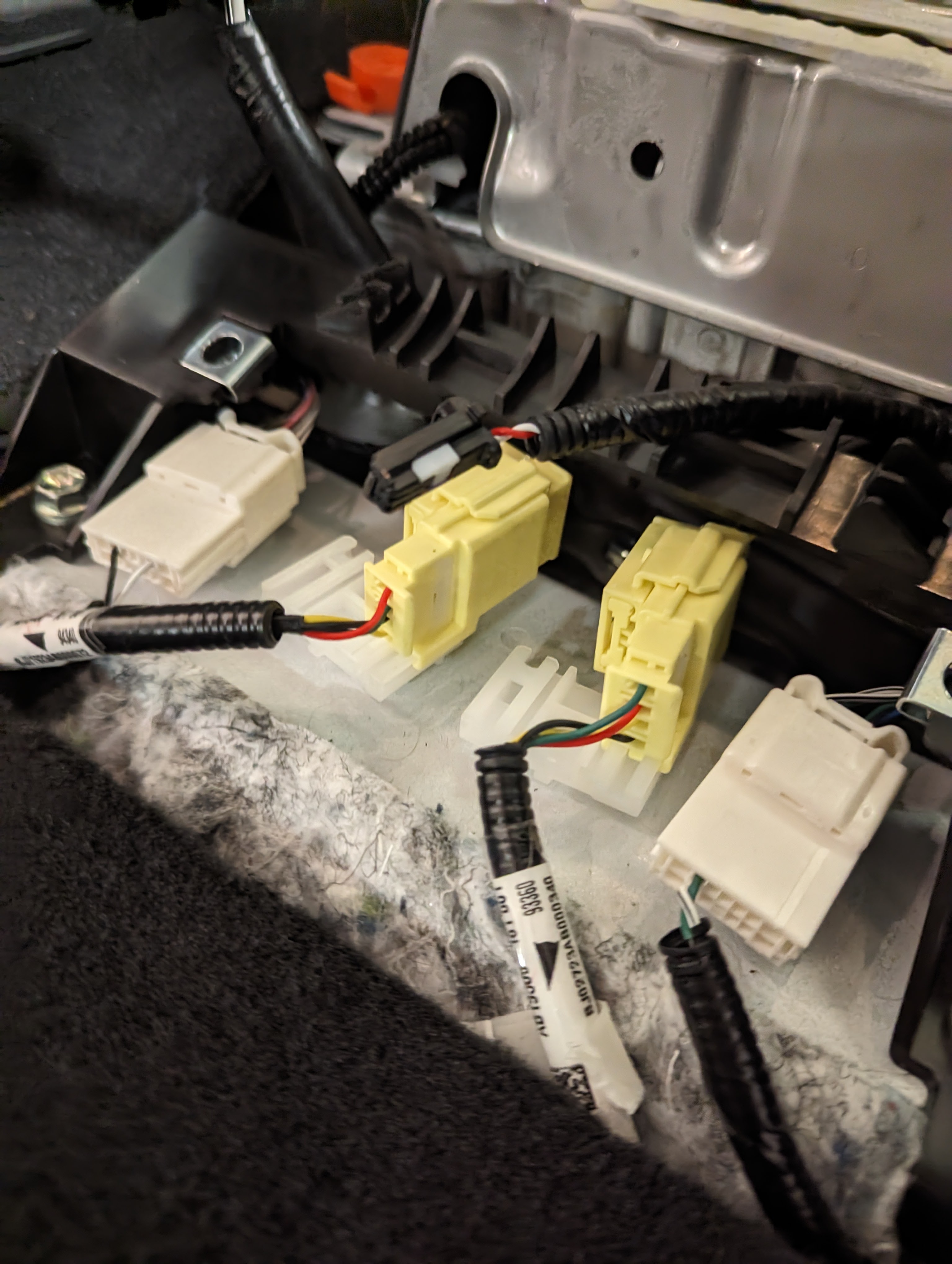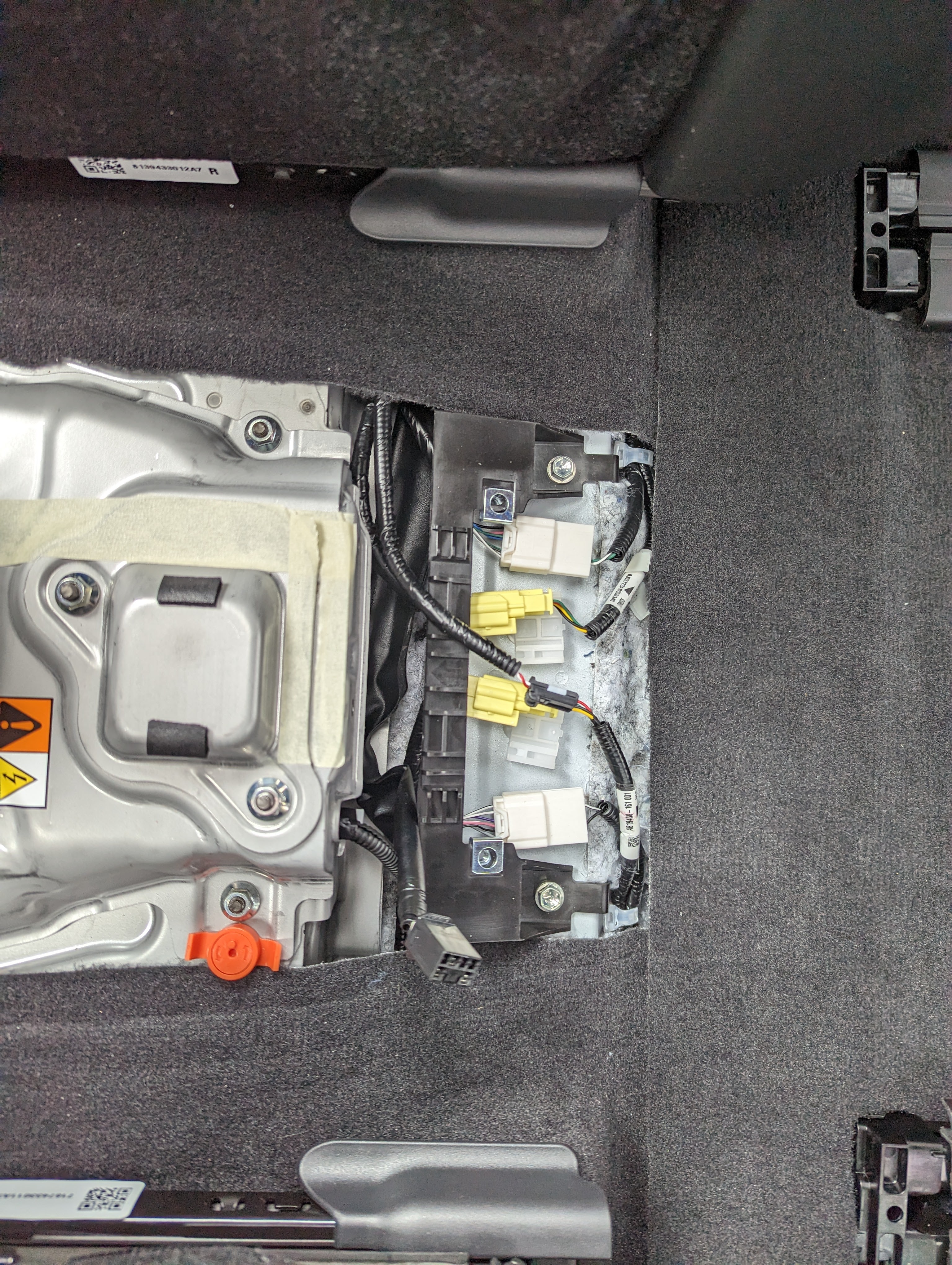 Yellow airbag plugs under the center console.