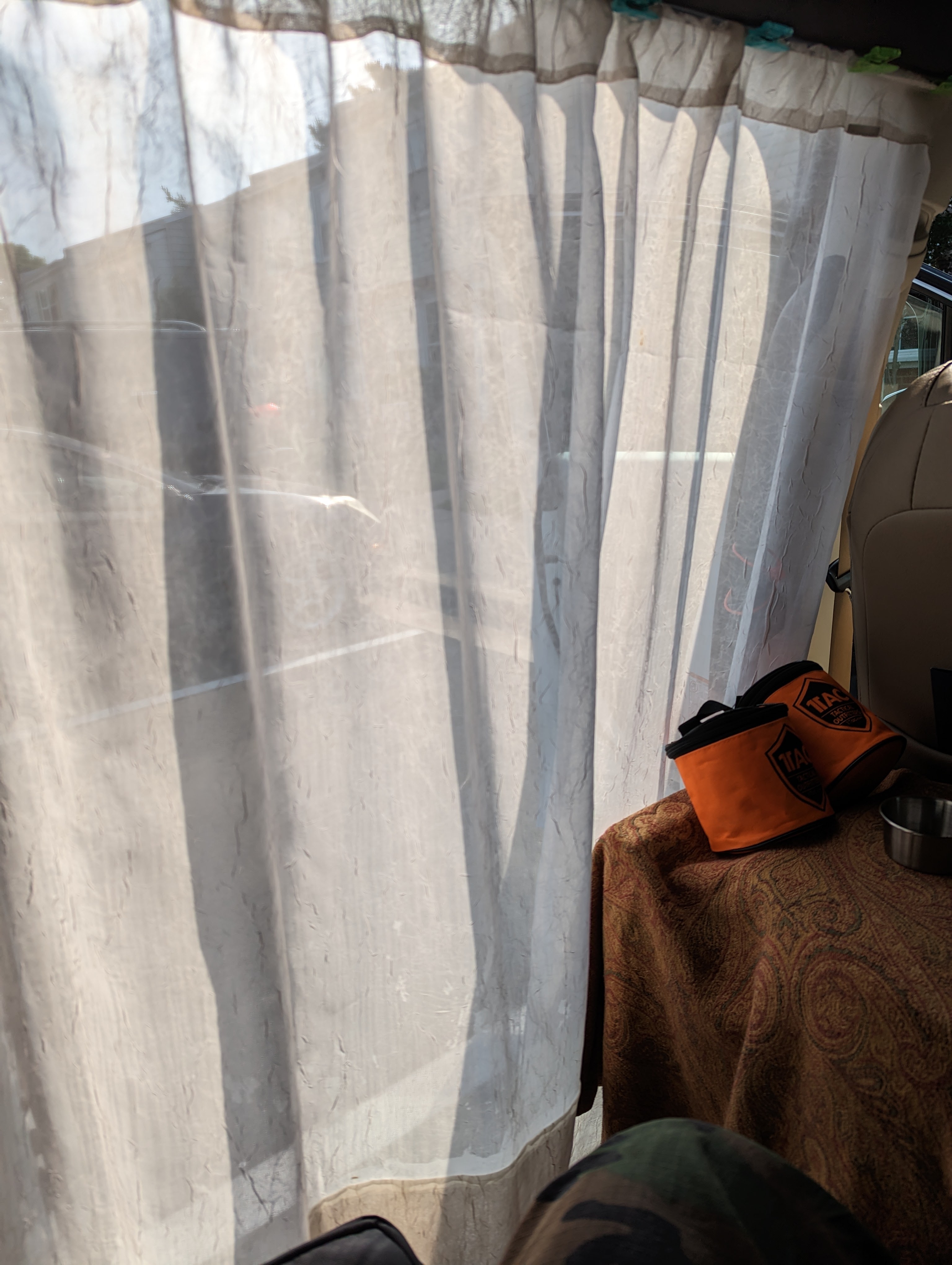 New curtains. I like these better and I’m still able to see out of the windows when backing up.