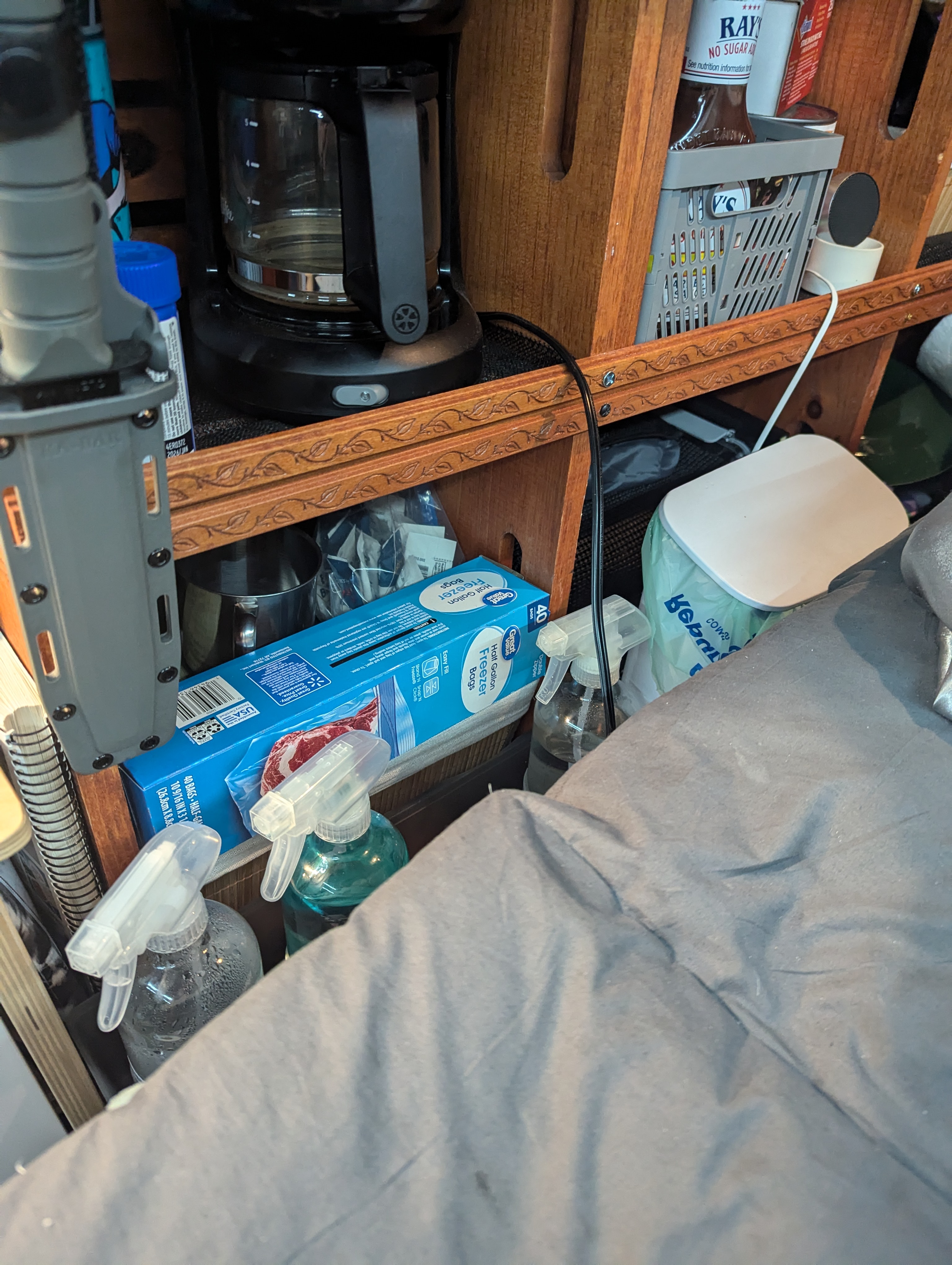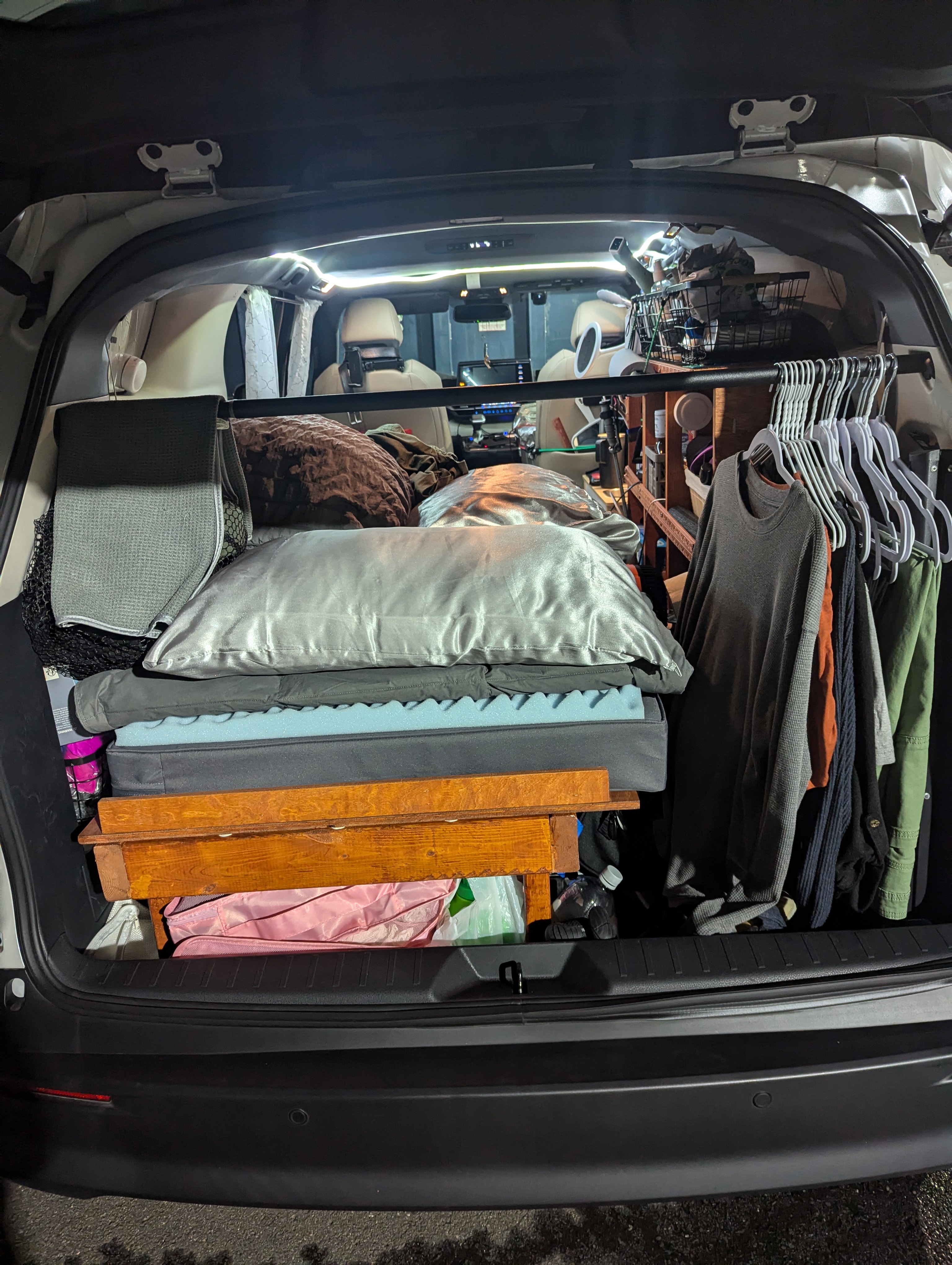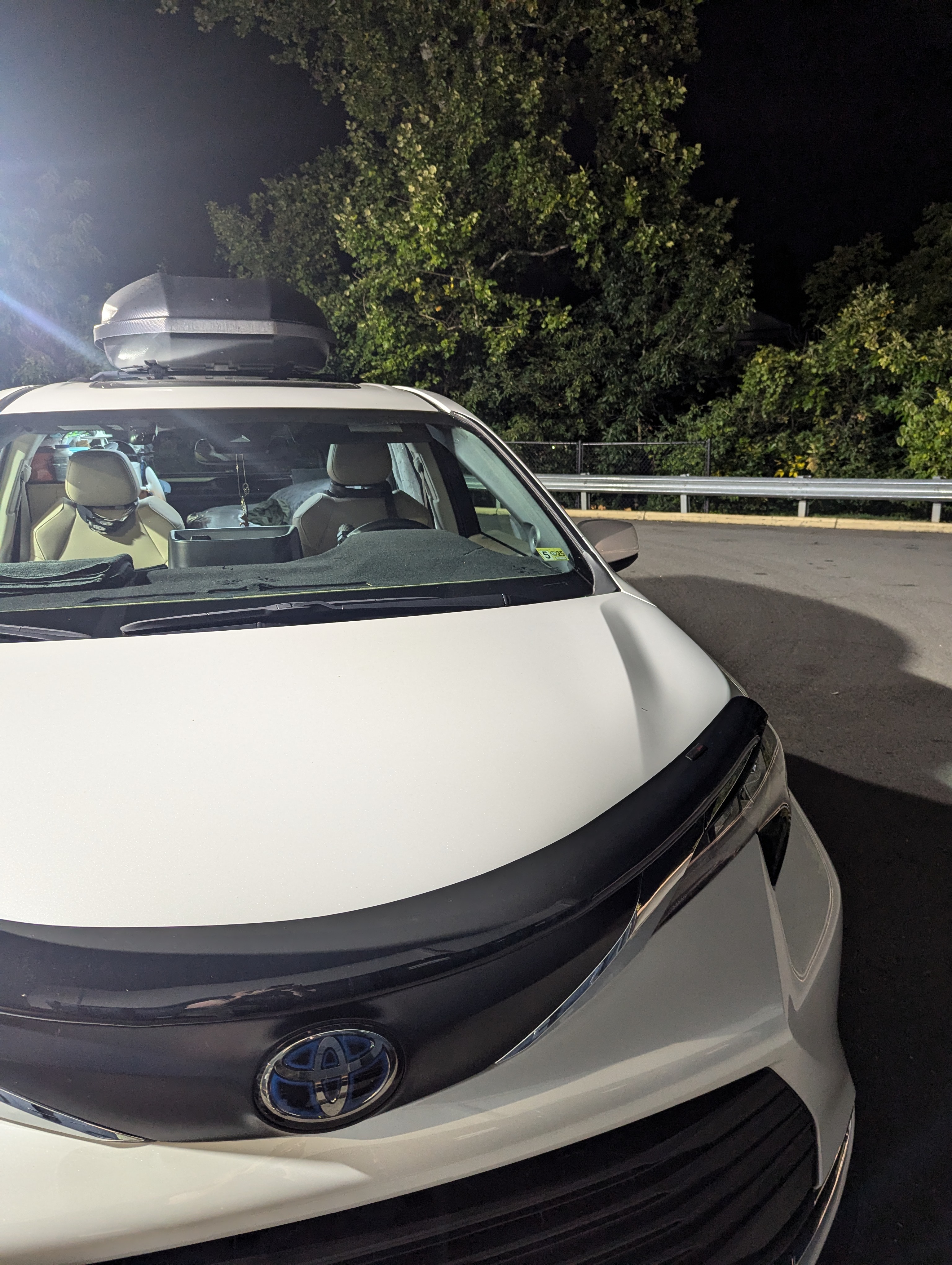 4:30 AM…unlocking my van from the inside so I can open the doors. First thing I do is removed the window coverings and put them away.