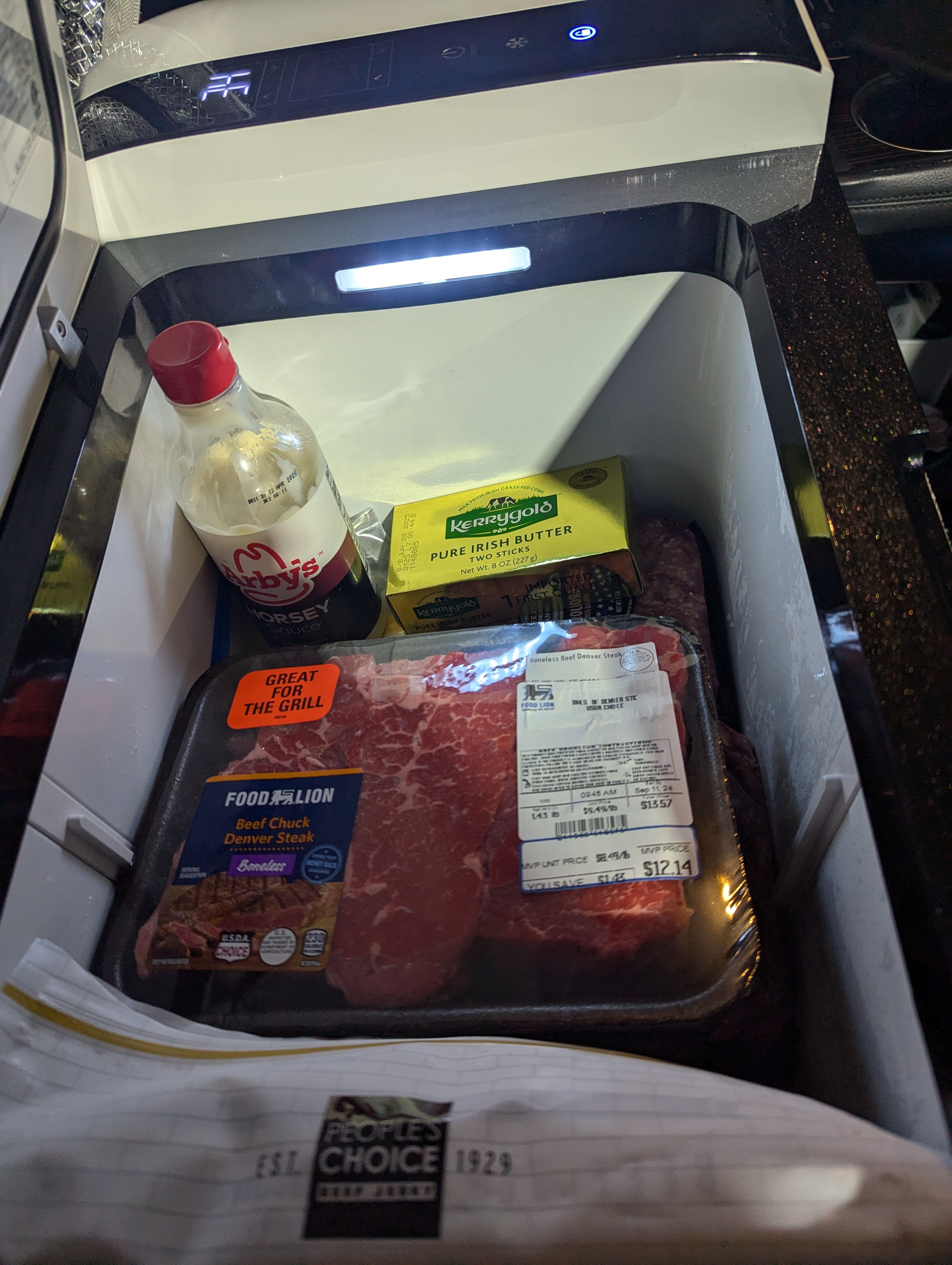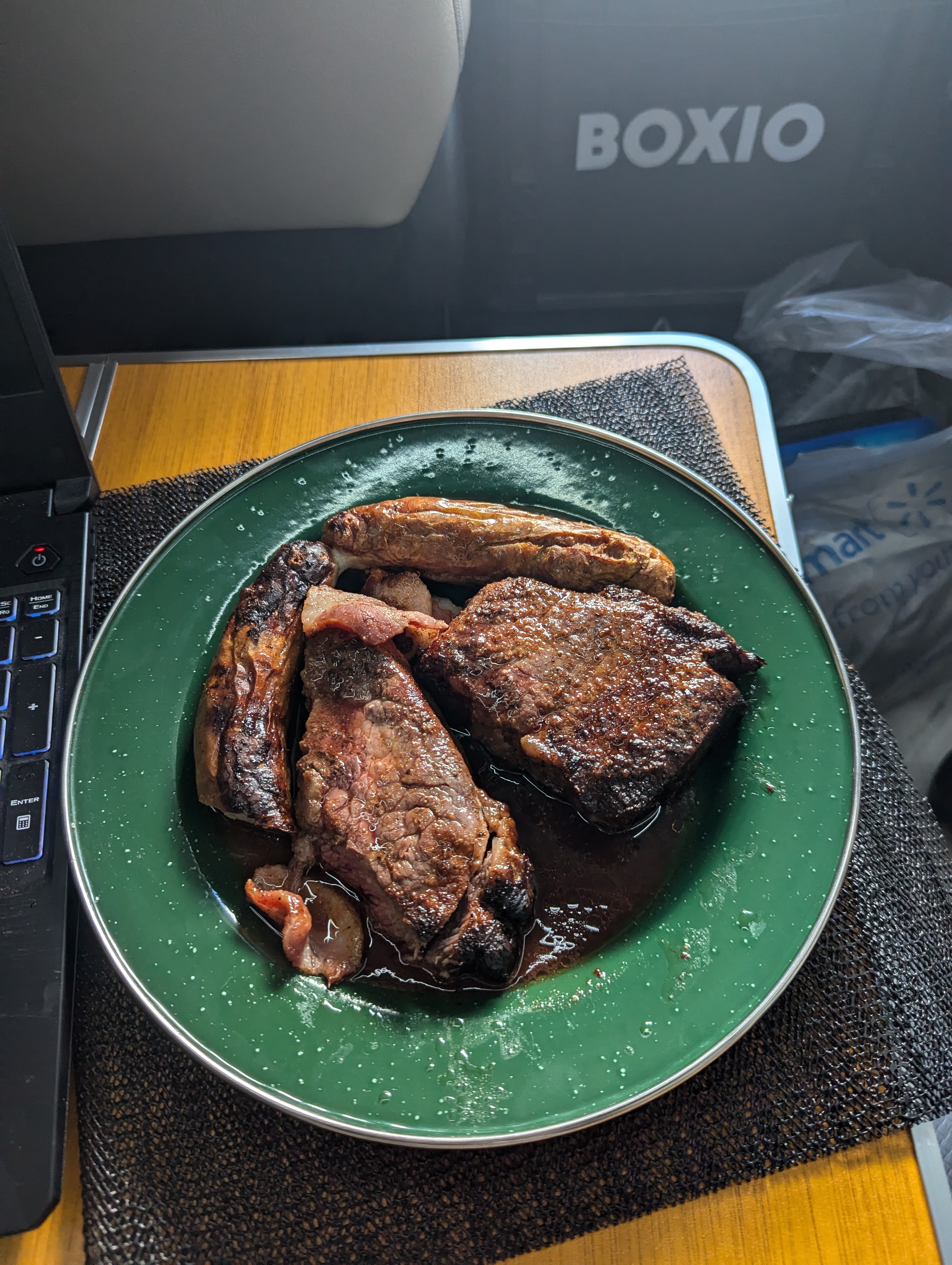 Yesterday’s meal of Bratwurst, Bacon, and Denver steak.