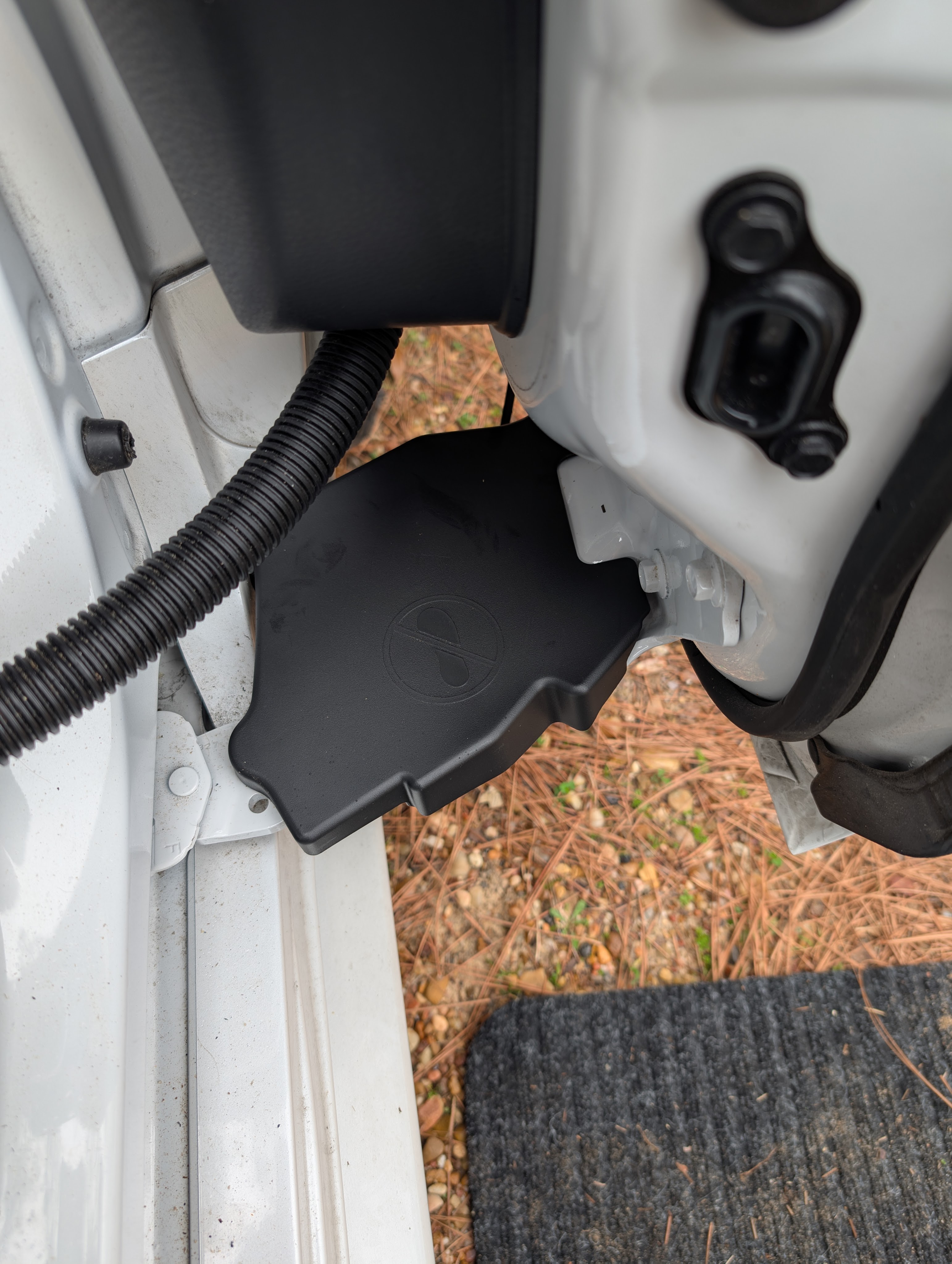 Last week, I got a few mods for my van. These pieces protect the hinges on the side doors from collecting dirt and debris. This helps a lot since I’m in and out of the van all day long.
