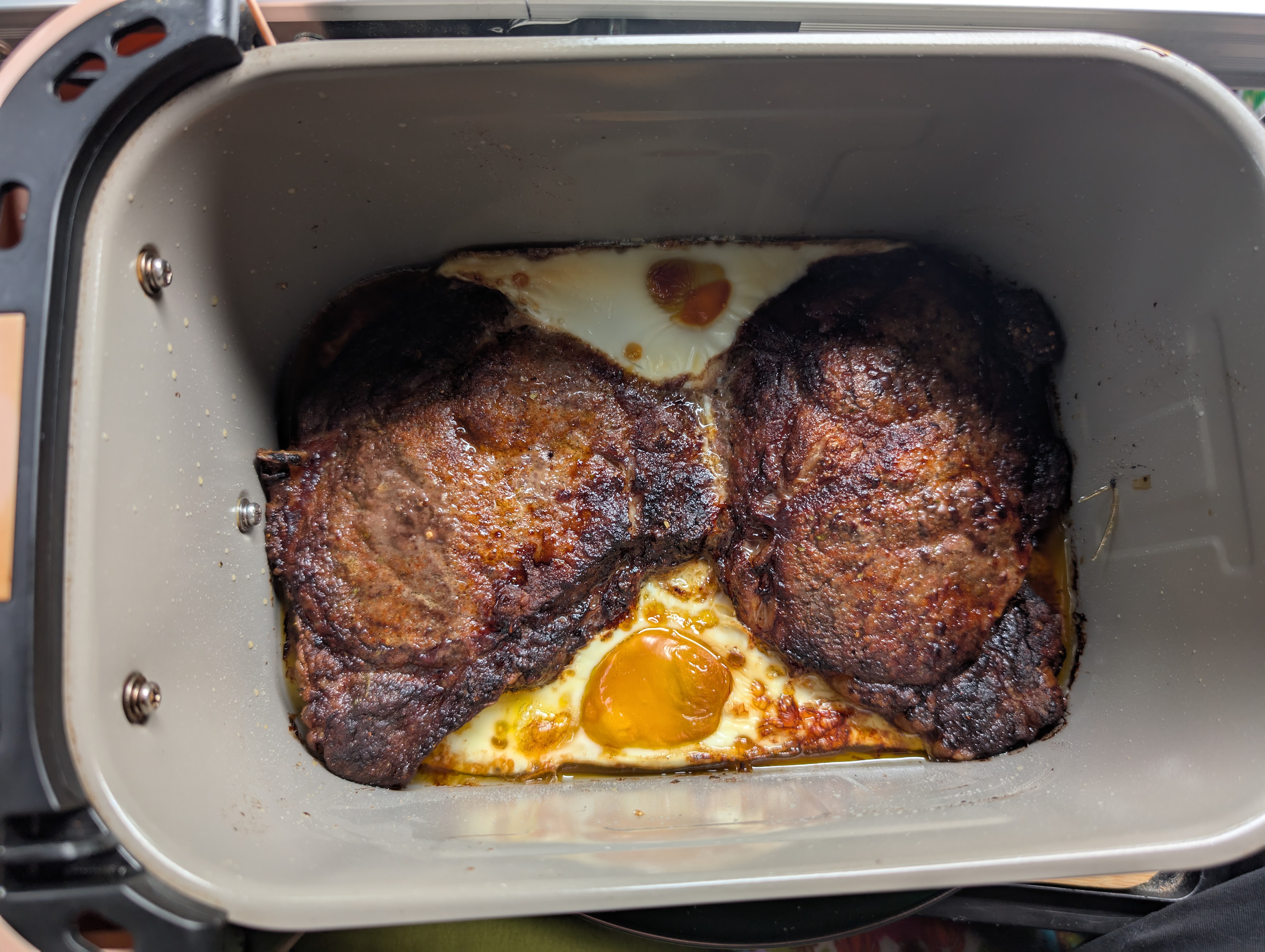 Today’s meal consists of steak and eggs in the air fryer. I mostly eat ground meat and eggs now because that makes me feel the best. I donated my ramen noodles to the clubhouse. I was so excited to have found them, but they just don’t make me feel good, and it takes me days to get back to normal. It just isn’t worth it to me.