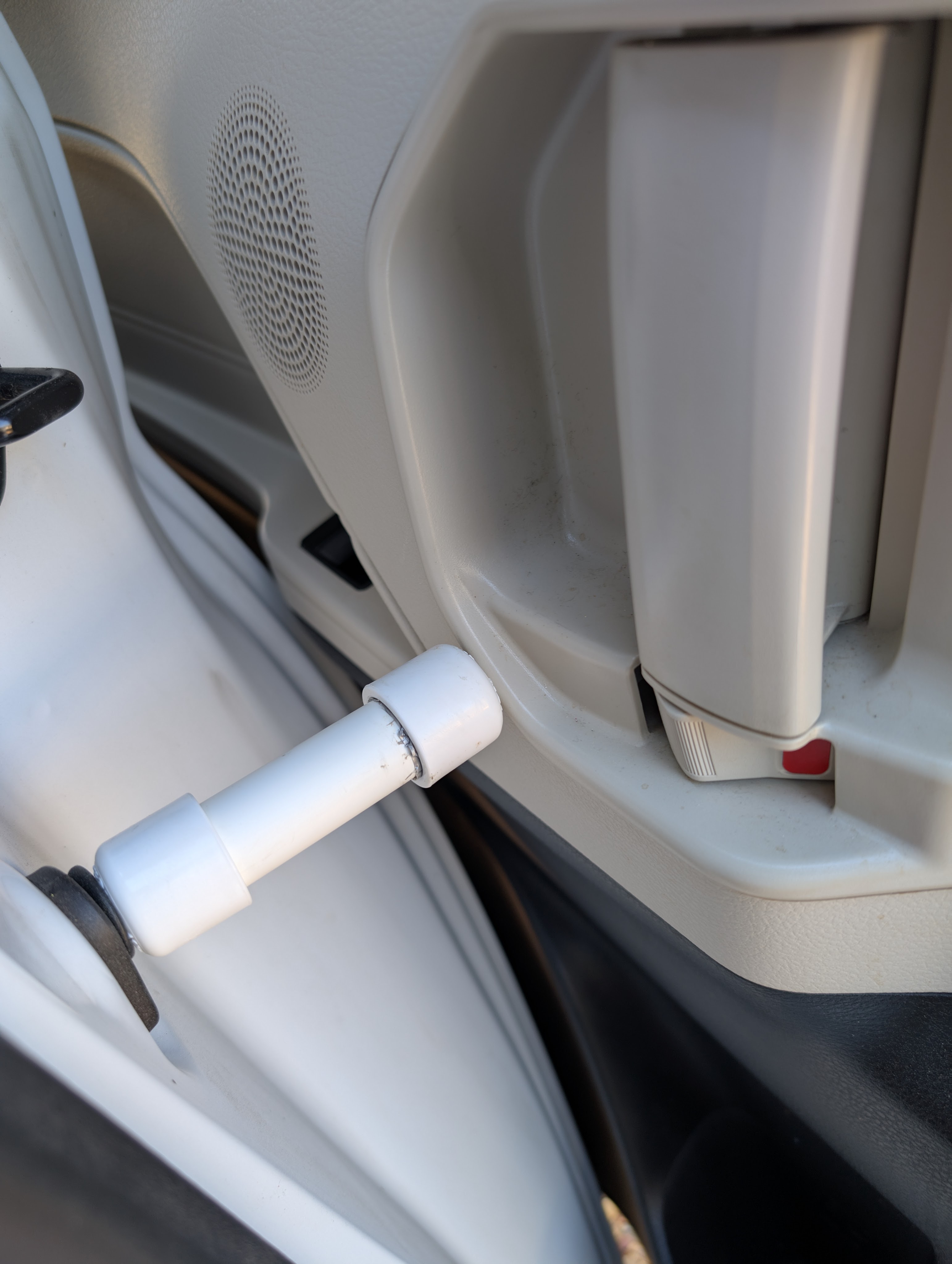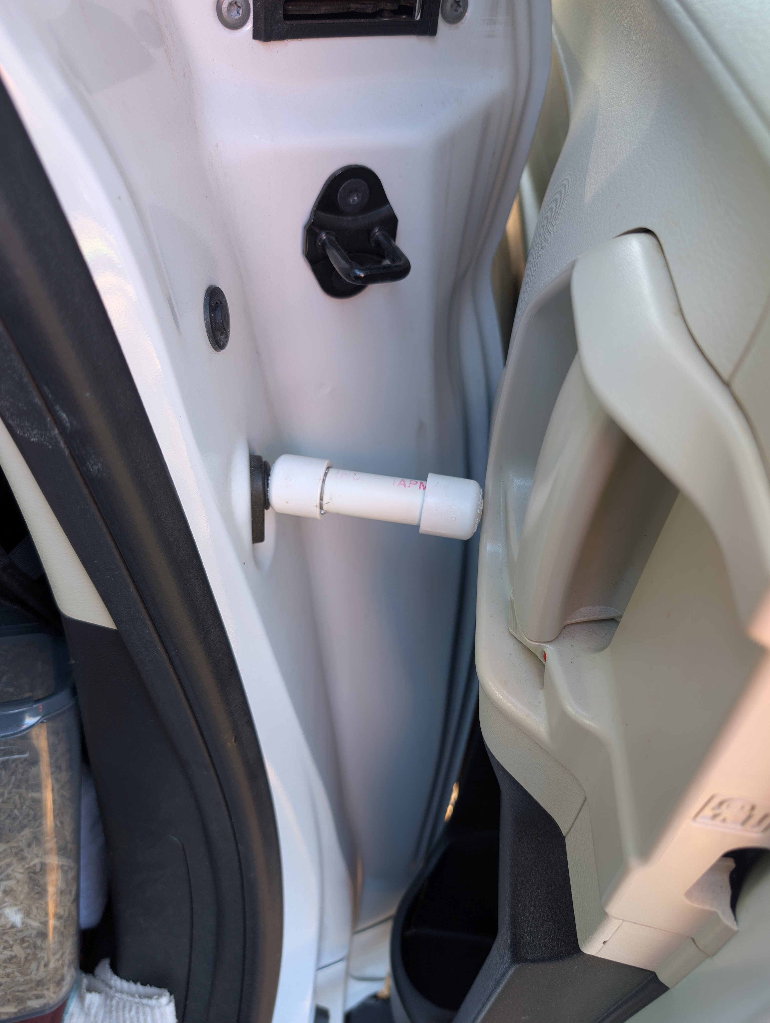 As long as this thing is wedged in, my Sienna thinks the door is closed. Now, I can finally look for a mosquito screen to cover the door while it is open.