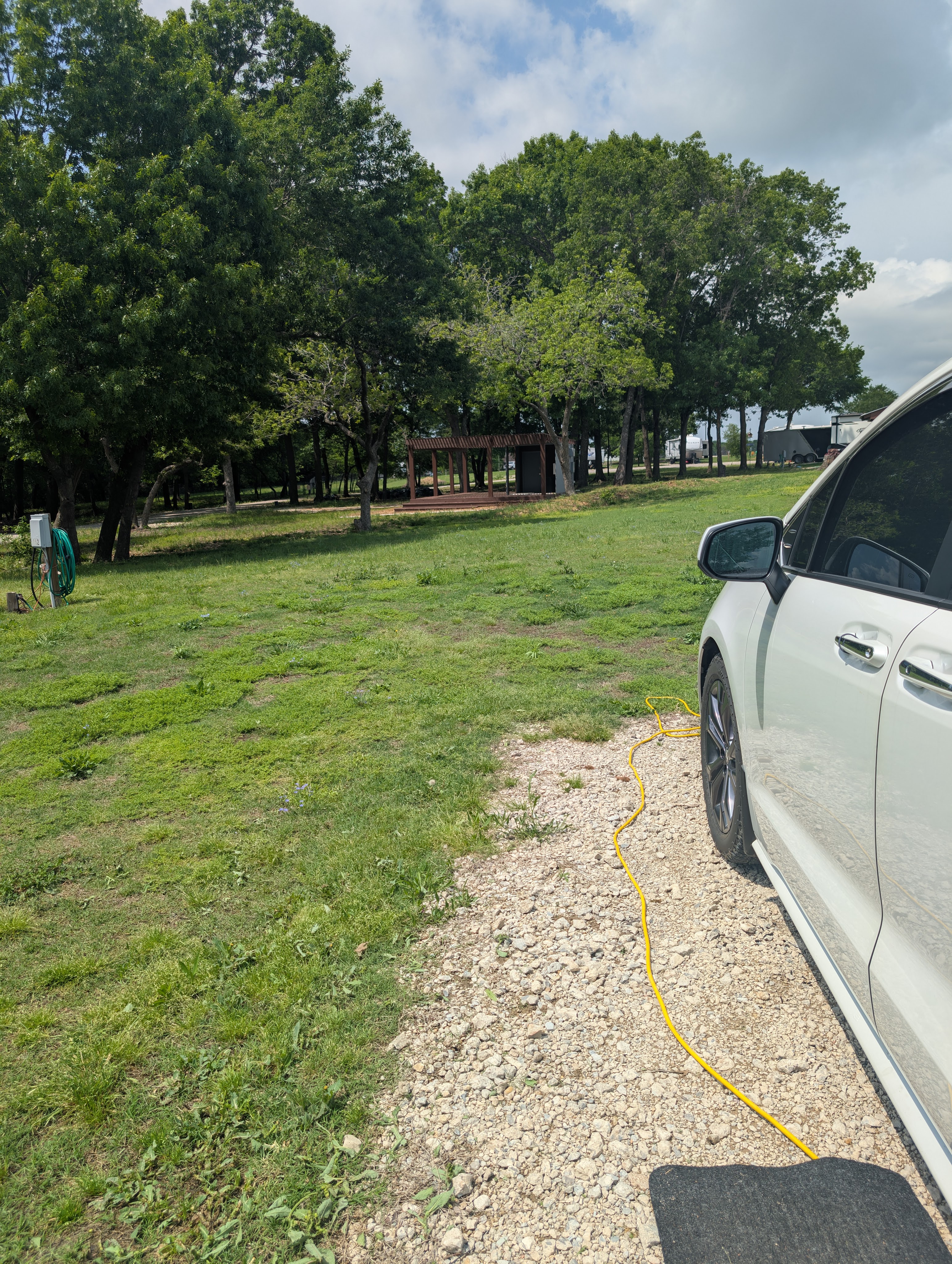 Miss Pearl parked and plugged in at T-Jay’s home.