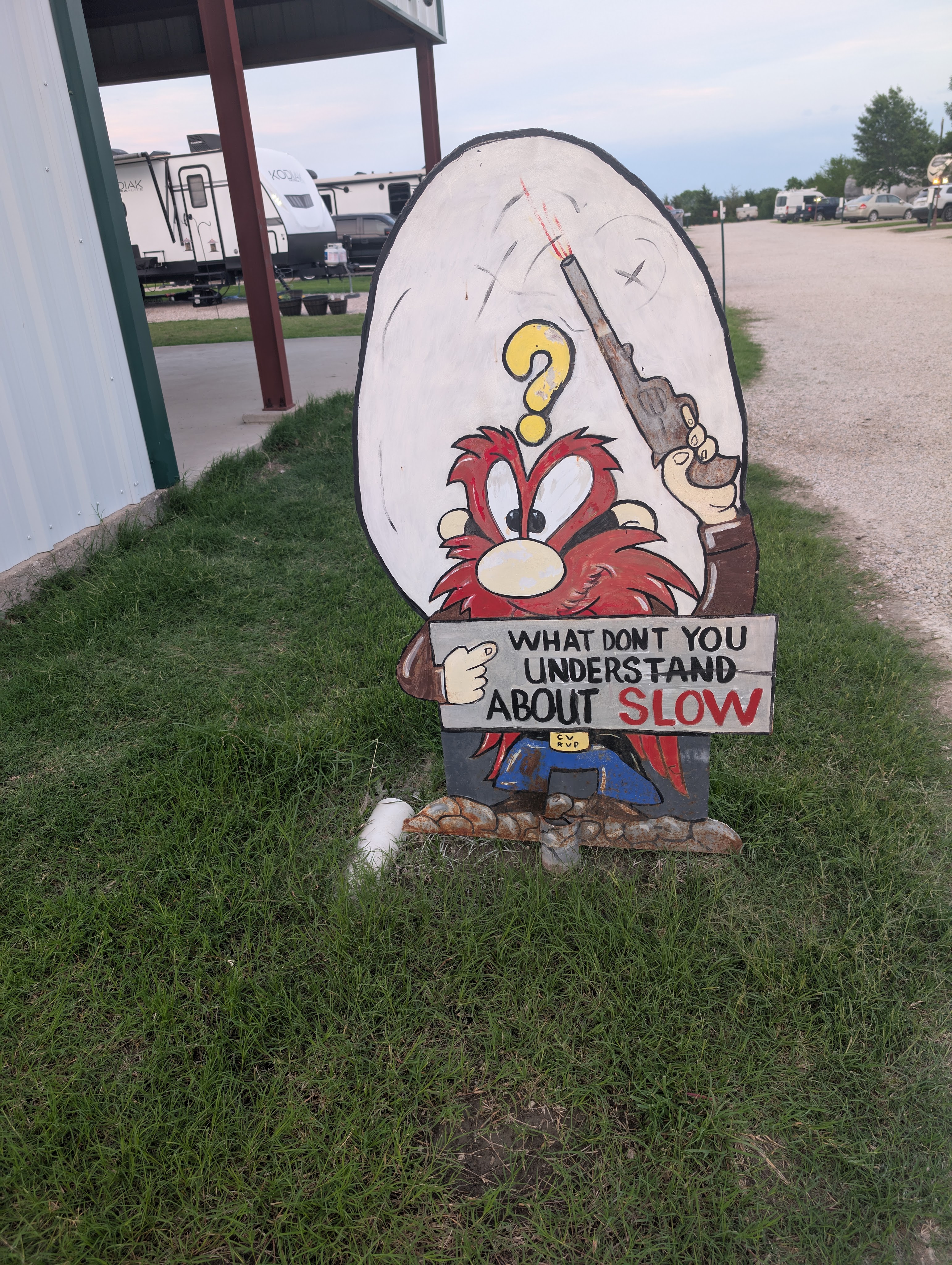 I parked in front of this office for the longest time. I was in no hurry, and it was such a relief to be here—a completely different feeling. It was early, and they were not open yet, but Terry got me signed up and gave me a choice of lots for the next 30 days. I’m parked right across from the clubhouse and bathroom.