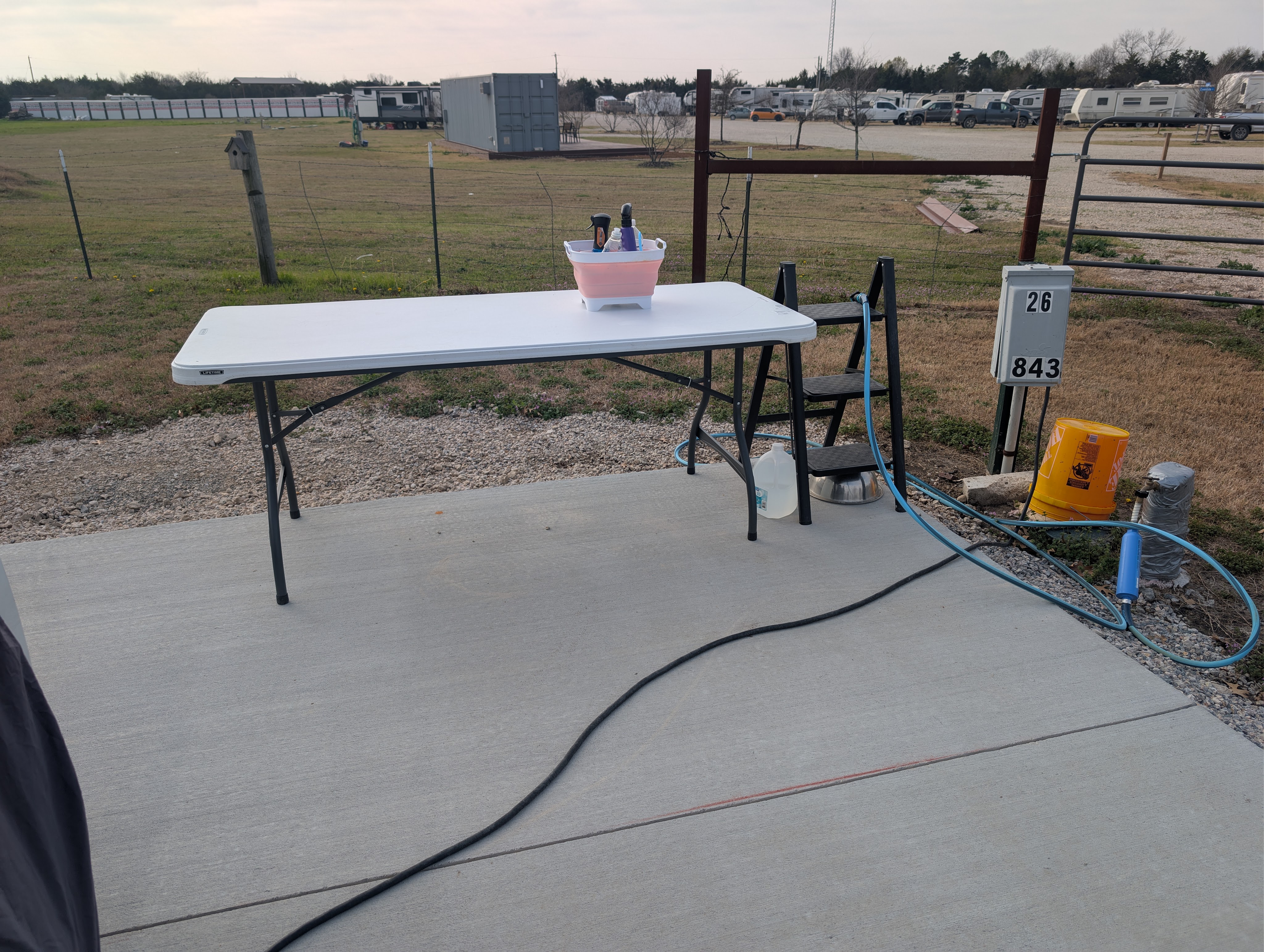 Last week, the new owner of this campground came by. He was on his way to a hardware store and asked me if I needed anything. I told him a picnic table would be awesome since the lots don’t come with any. Ten minutes later, I had a table. He also told me that he and his wife have bought the campground that’s behind me, behind the fence. Eventually, it will house all the full-time residents. Lots of changes are coming.
