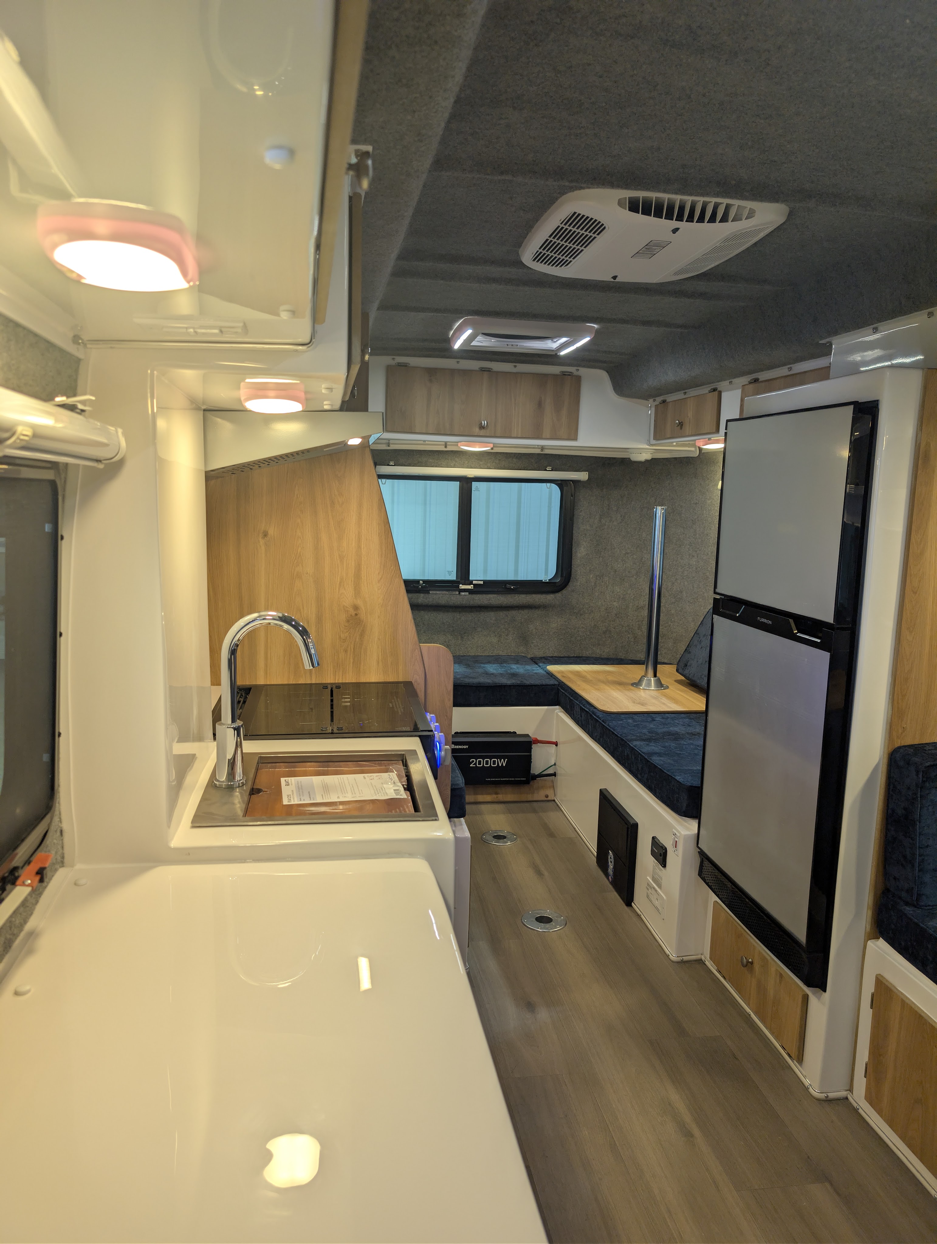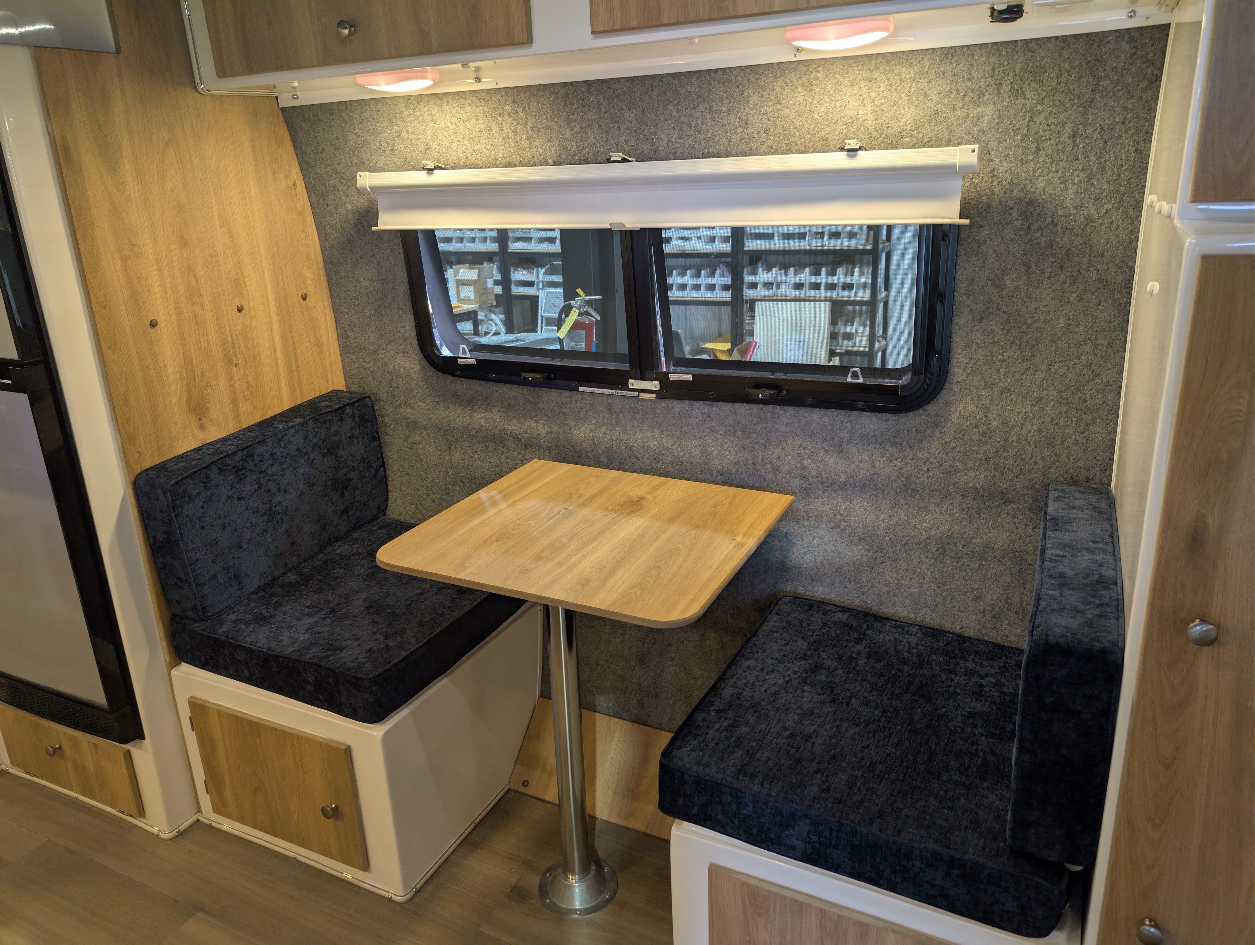 It is made of two pieces of Fiberglass and is truly a 4-season camper. It’s well insulated, and the woodwork inside is excellent. Their resale value is incredible.