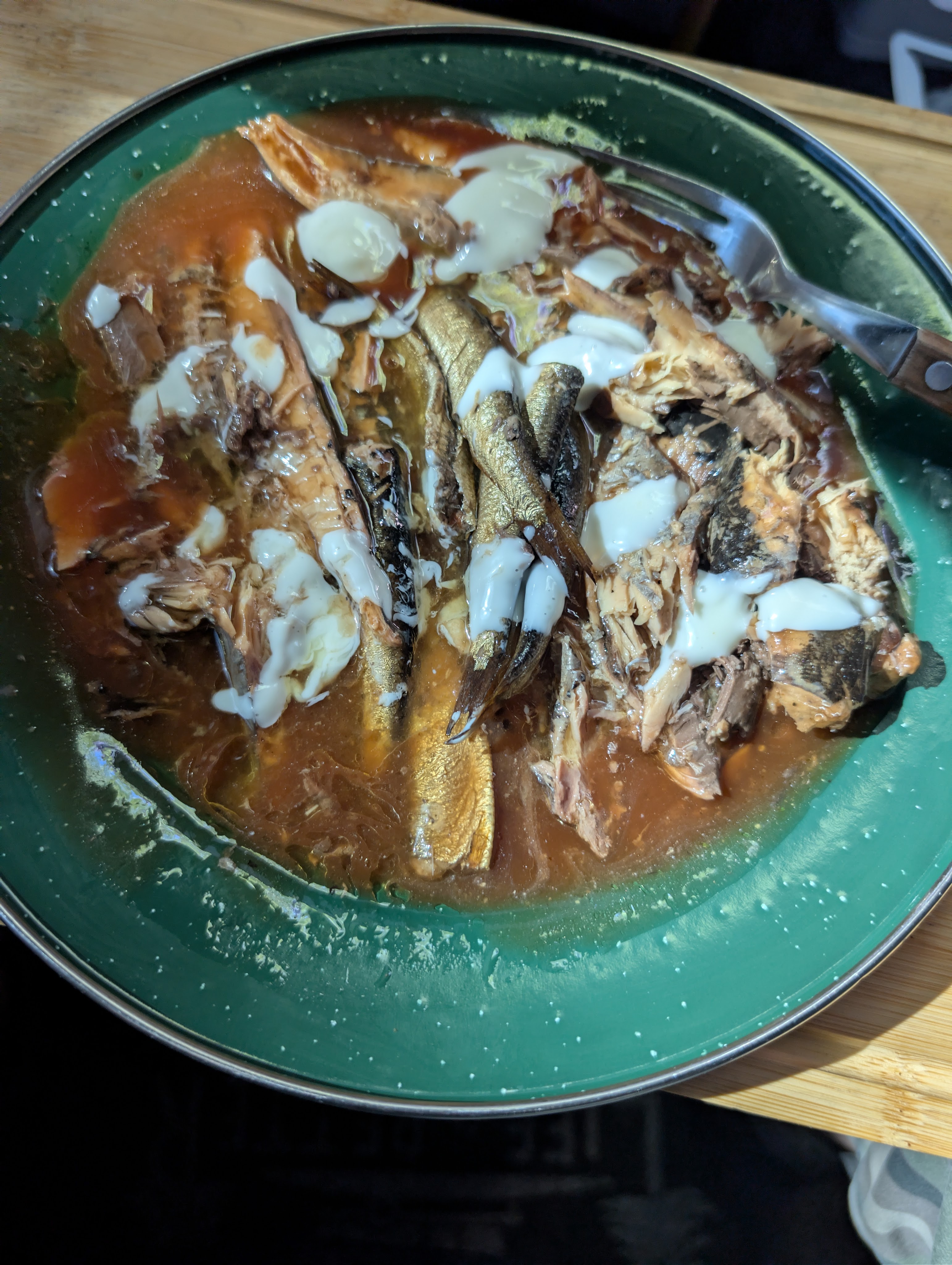 This was my meal yesterday. Smoked sardines with horseradish sauce. I think I will eat sardines for the next couple of days to rid my belly of fat, which has been a bit stubborn.