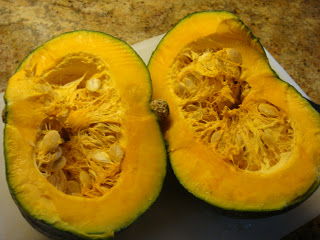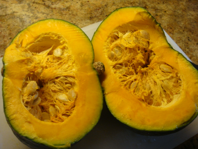 Last month, Pete introduced me to Kabocha, a Japanese squash.  I’ve never really been a squash person and have never cooked it before, but I thought I would give it a try.  Pete never mentioned that I would need a sledge hammer to cut this bugger up.