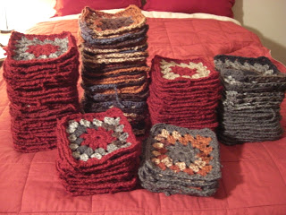 My blanket, afghan, or whatever you want to call it, is ready to be put together.  I now have 128 pieces.