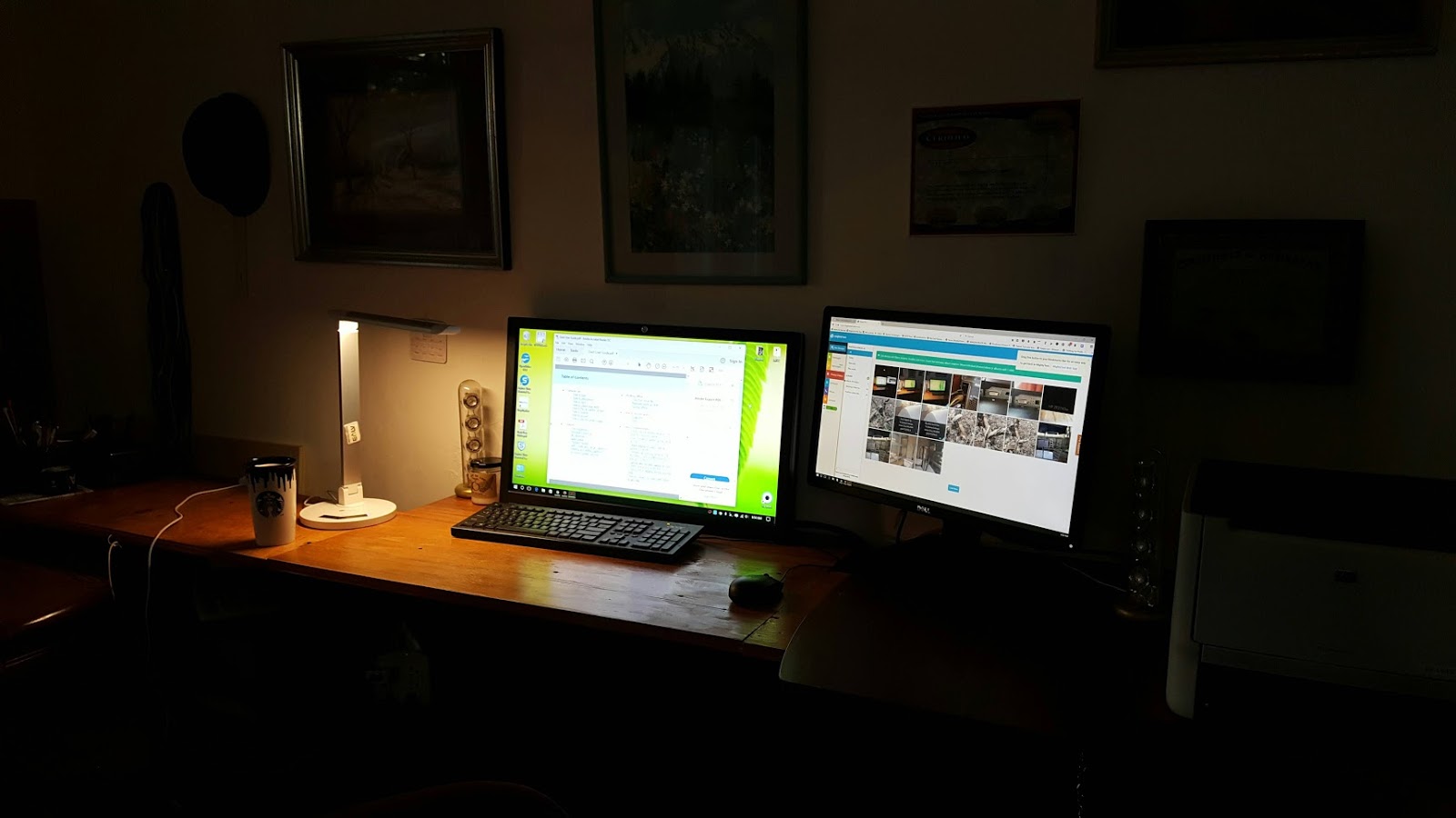 I spent Saturday afternoon rearranging my work area. I needed the second monitor back up for a side job that I am interested in getting.