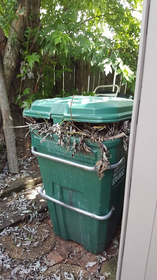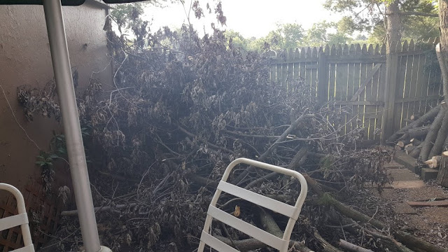 Last week I had that trash can stacked up with branches and the trash company took every ones trash except for mine. That’s okay, I’ll break the branches and limbs down into little pieces. They WILL take these tree limbs bit by bit. I don’t care if it takes me all summer!!!
